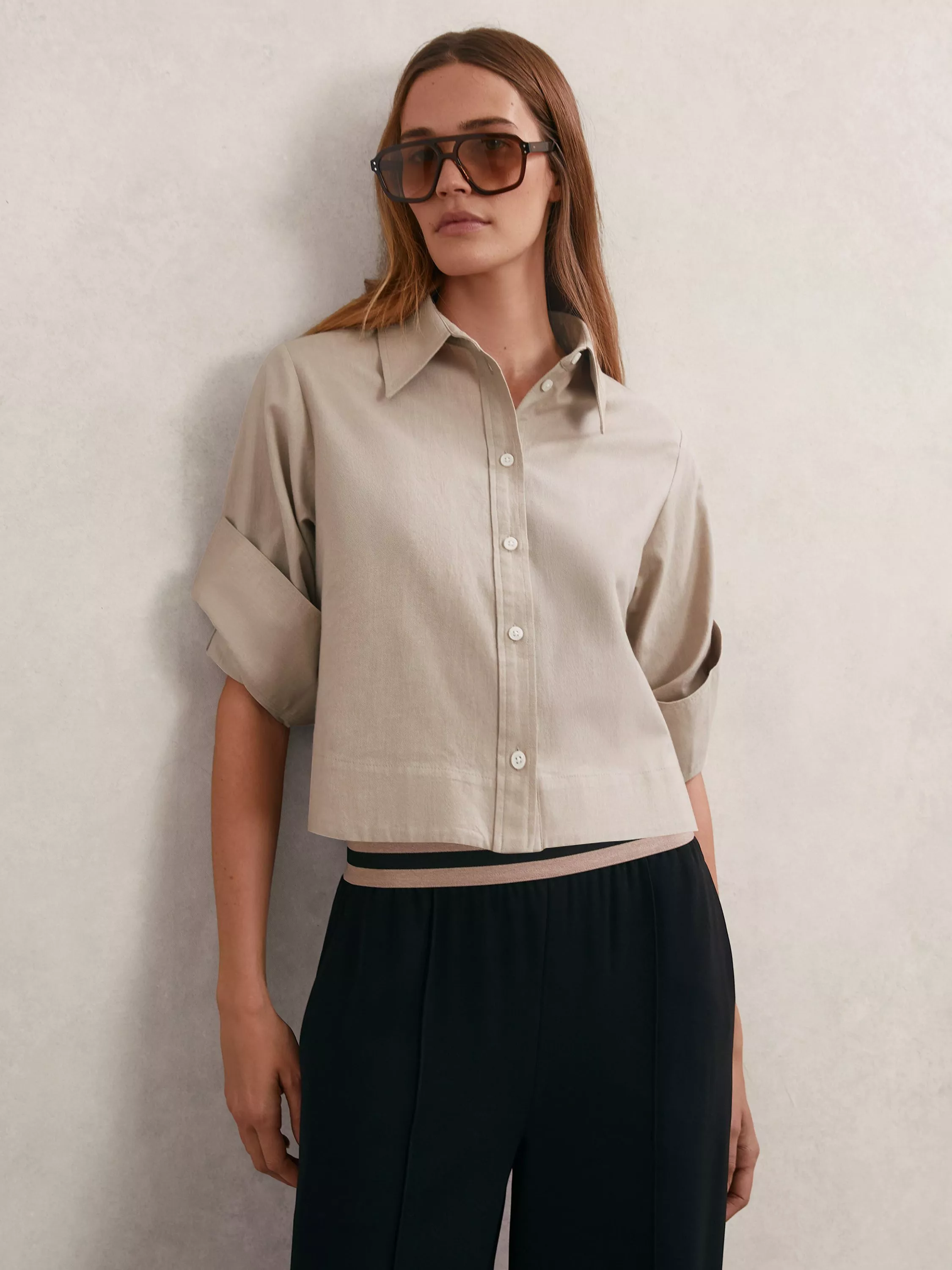 ReissCaylan Cropped Shirt, Neutral