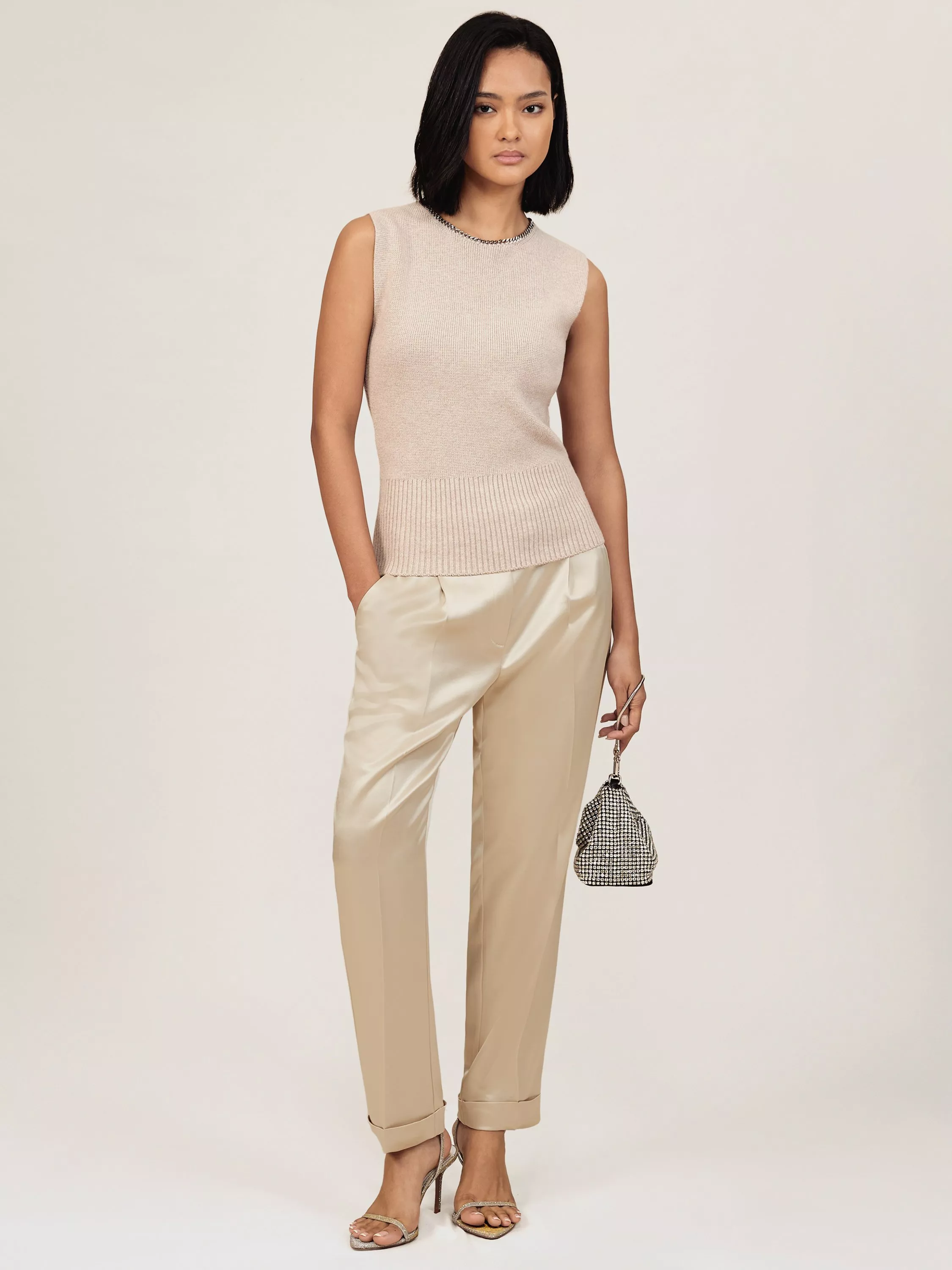 Tapered shape trousers from Reiss, made in soft satin. This style is cut to sit mid rise with a zip fastening and hems that fall to a regular length.
