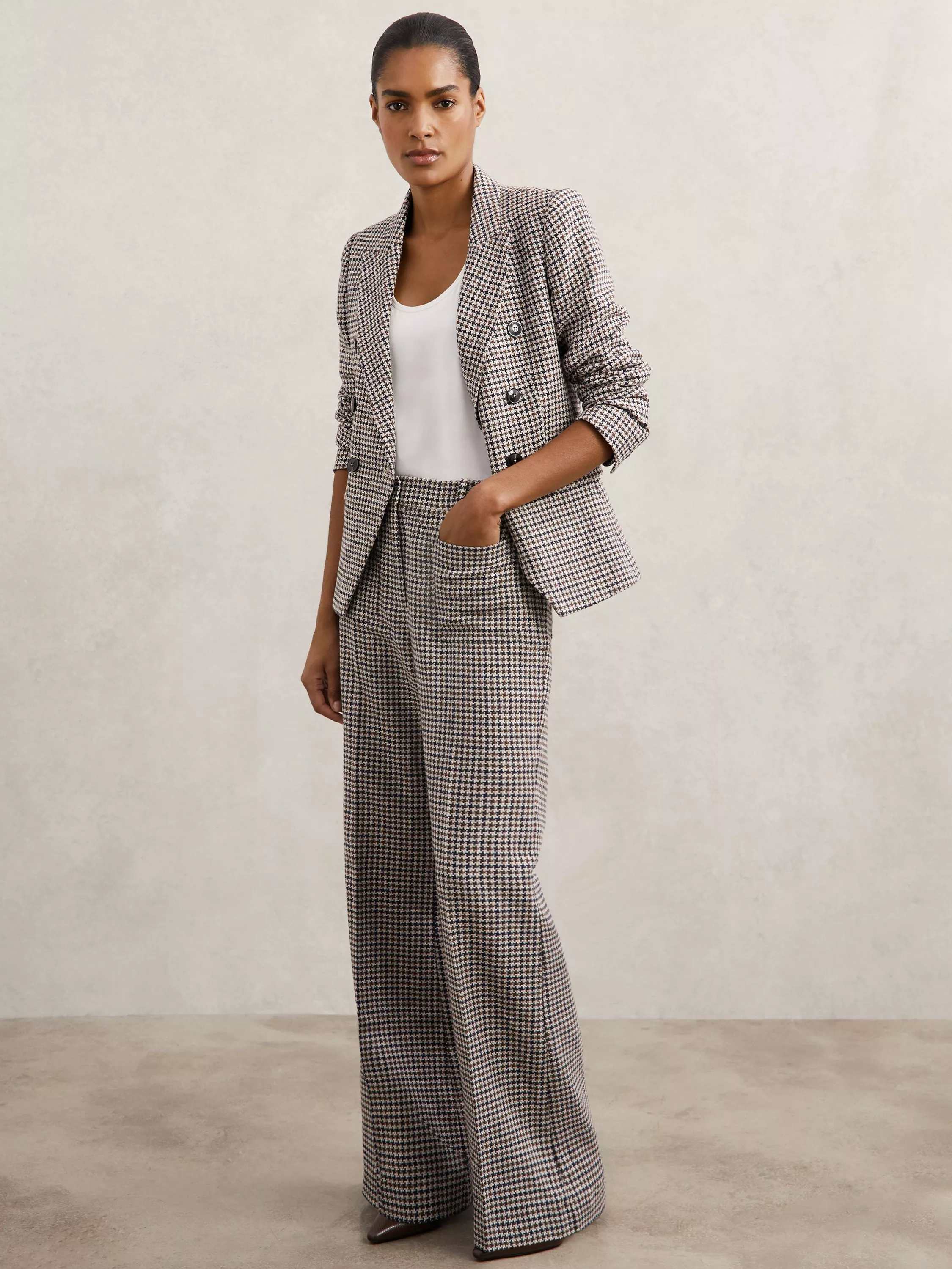Close fitting up top and exaggerated with volume through the leg - a pair of flared trousers from Reiss made from a cotton-blend fabric. This style is cut to sit mid rise with a zip fastening, dogtooth print and longer length hems.