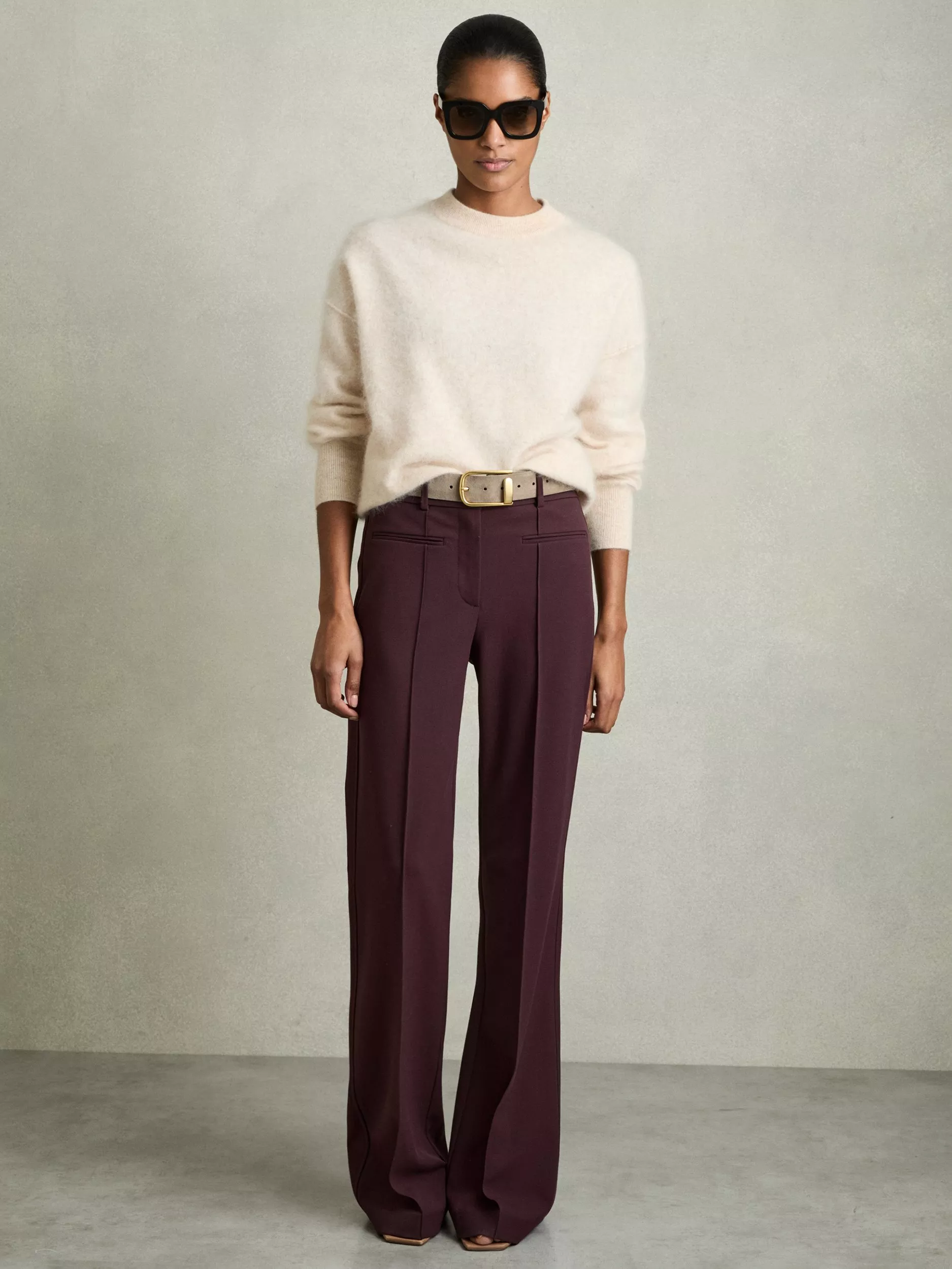 ReissClaude Flared Trousers, Burgundy