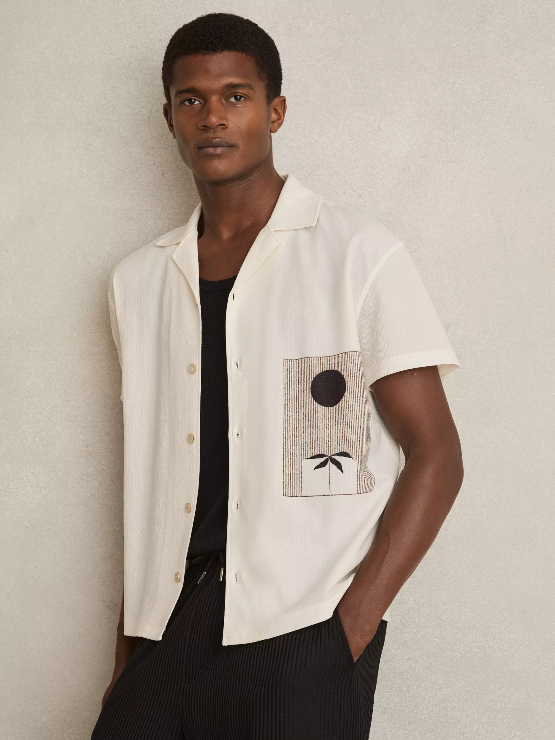 A comfortable piece that will slot seamlessly into smart-casual dress codes, this short sleeved shirt by Reiss features a tonal summertime graphic and is cut to a fluid fit.