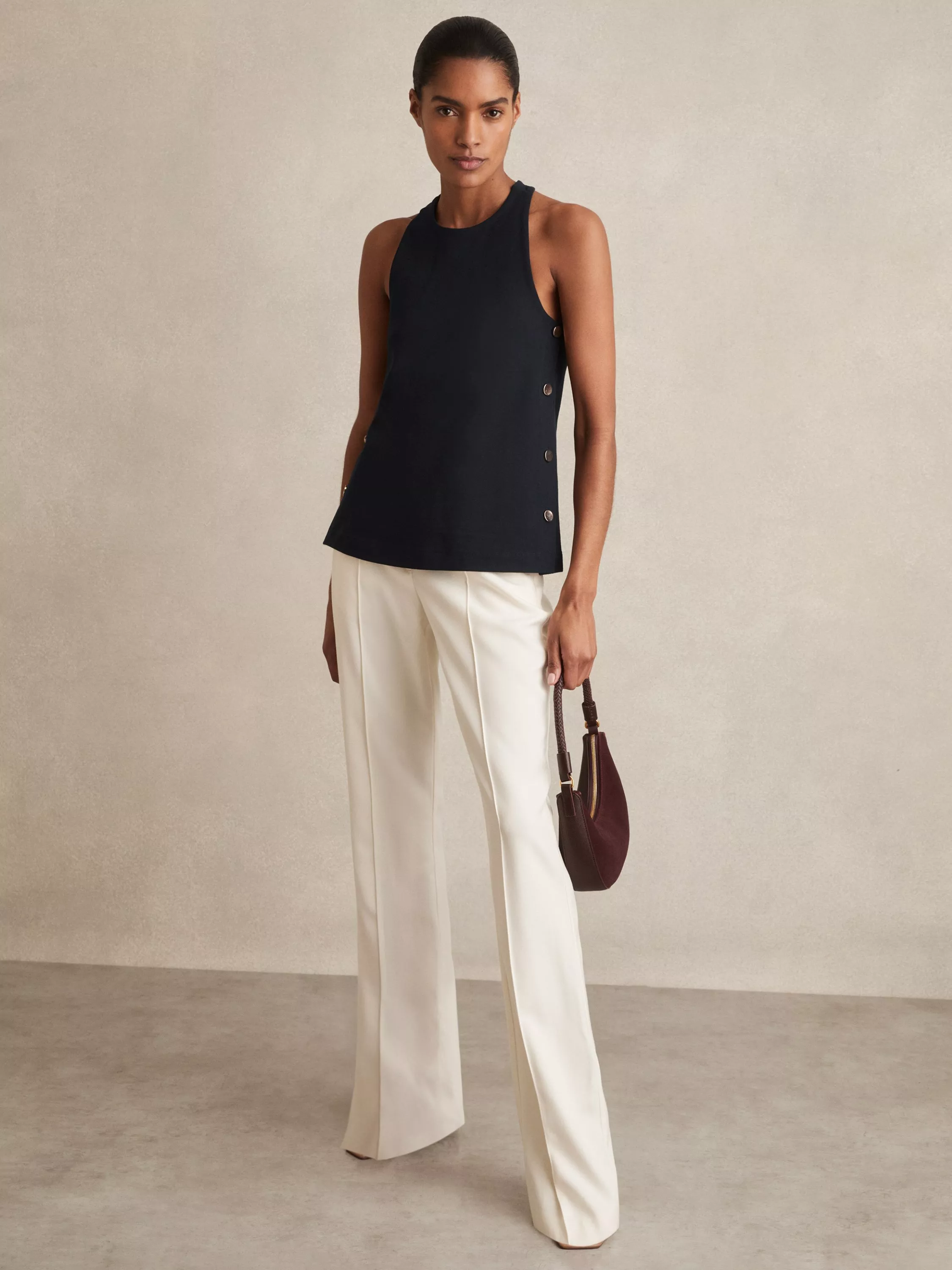 ReissCosmo Stud Detailing Top, Navy