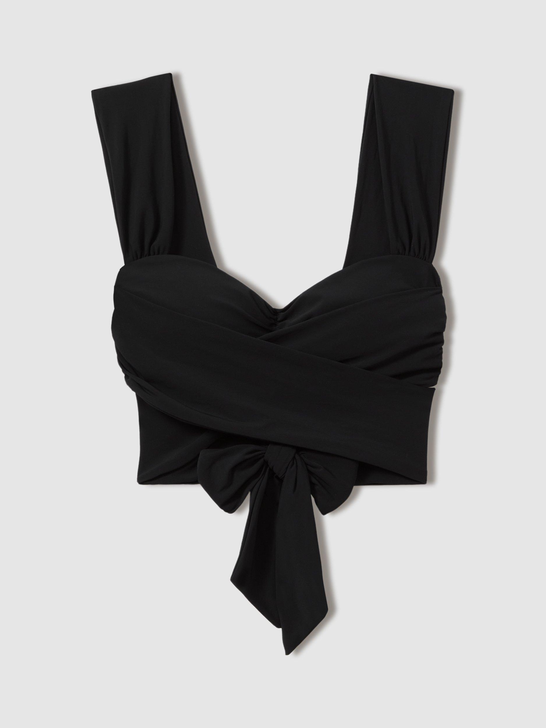 Always ready for when you fancy a dip, this wrap bikini top by Reiss has a cropped design, an open back and wide straps.