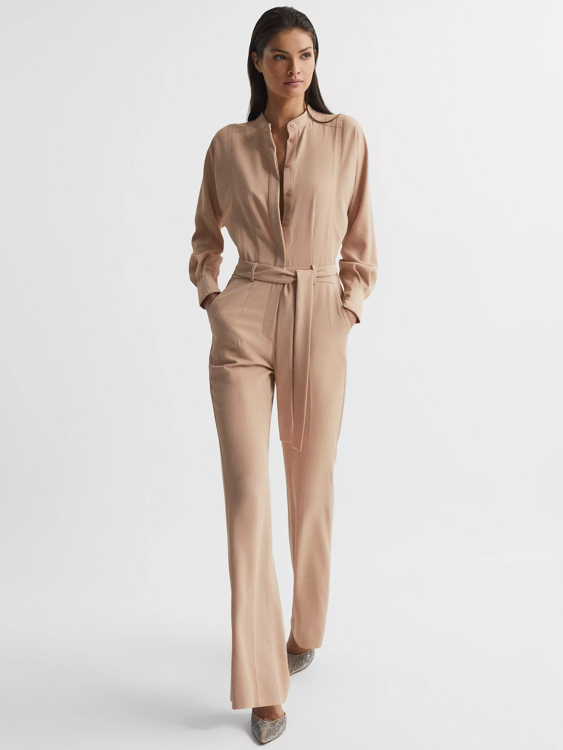Smartened with a collar neckline and long sleeves, this self-tie belt jumpsuit by Reiss offers a nod to the soaring ‘70s with its flared shape and is whipped up from a lightweight fabric that's built to last.