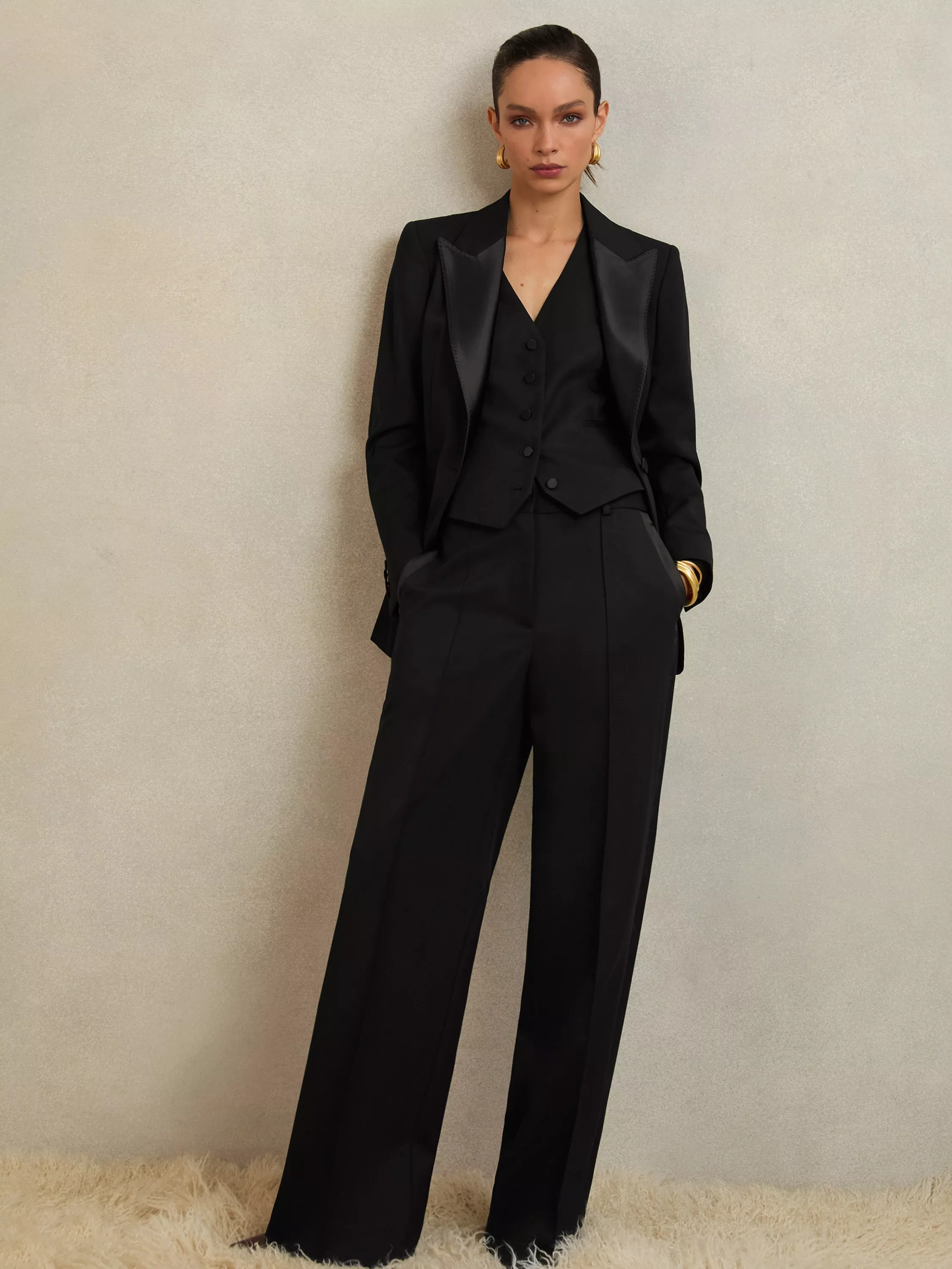 A single-breasted blazer from Reiss, crafted in a smart wool blend. Its V-neck lapels and lace detail invite intrigue, offering practical comfort and a touch of sharp charm to your daily or party looks.