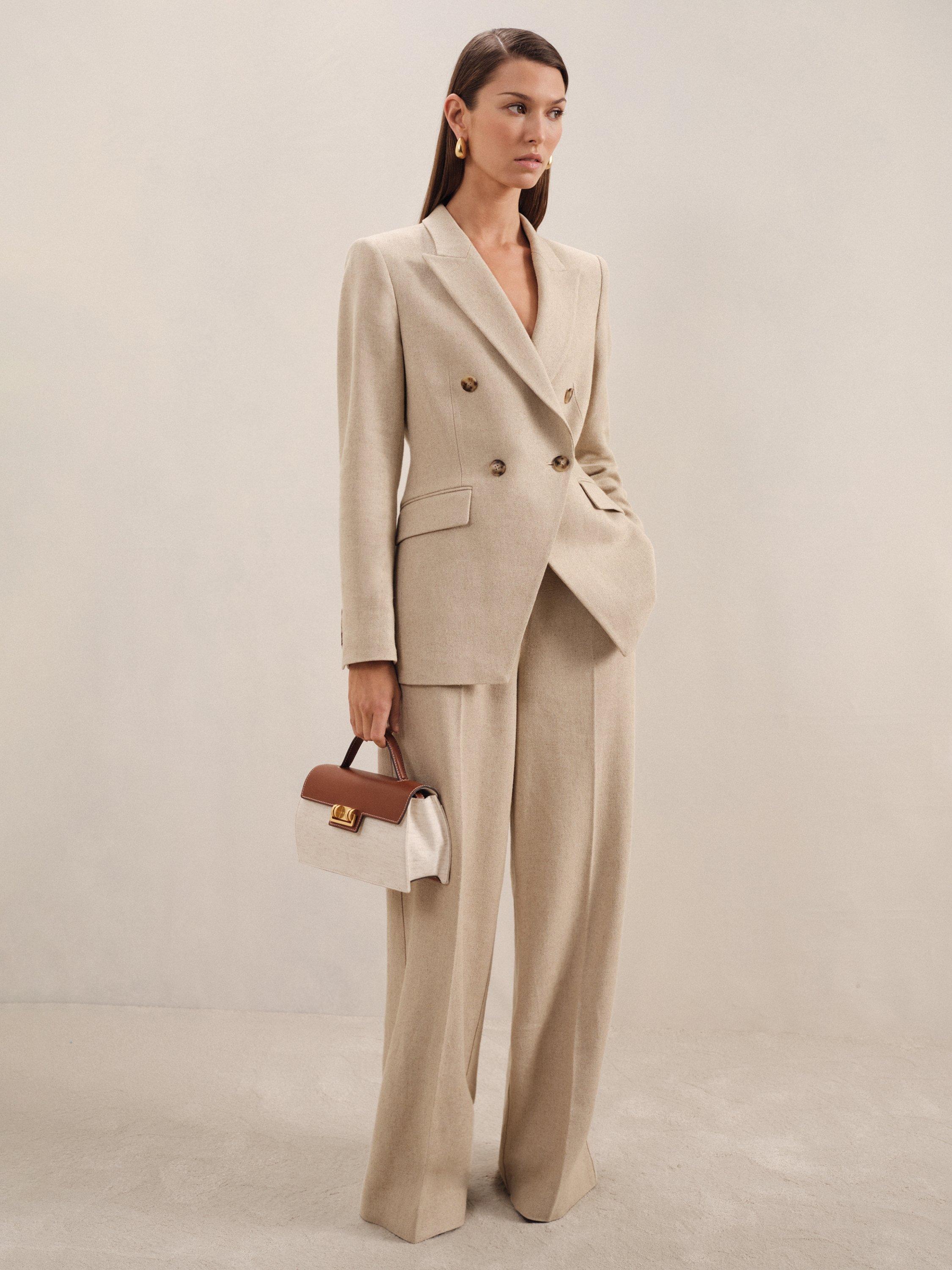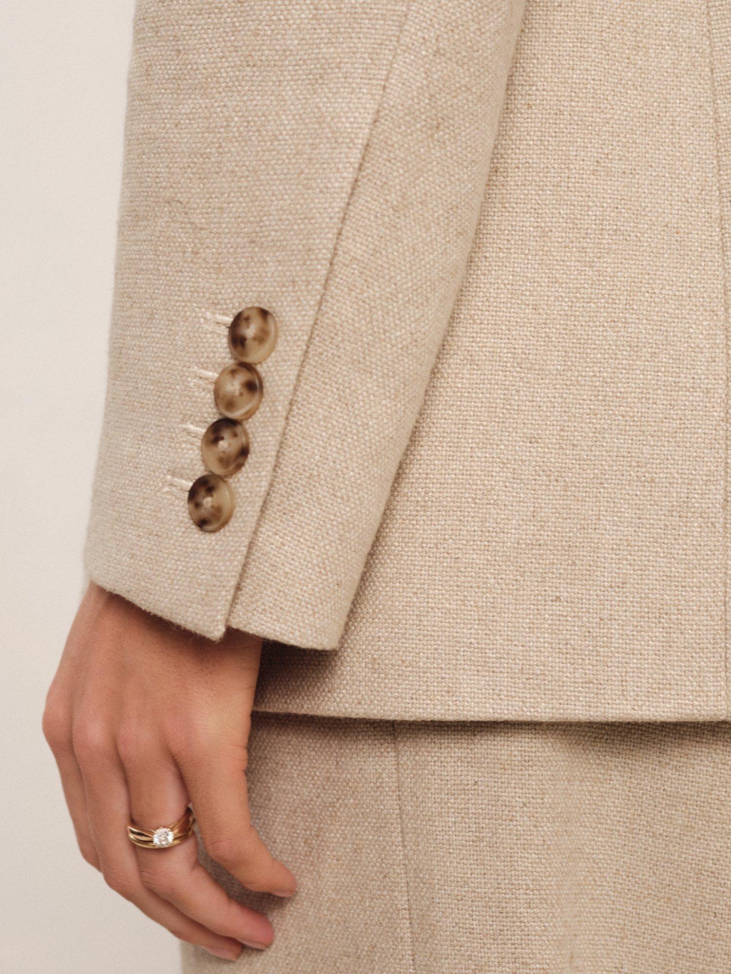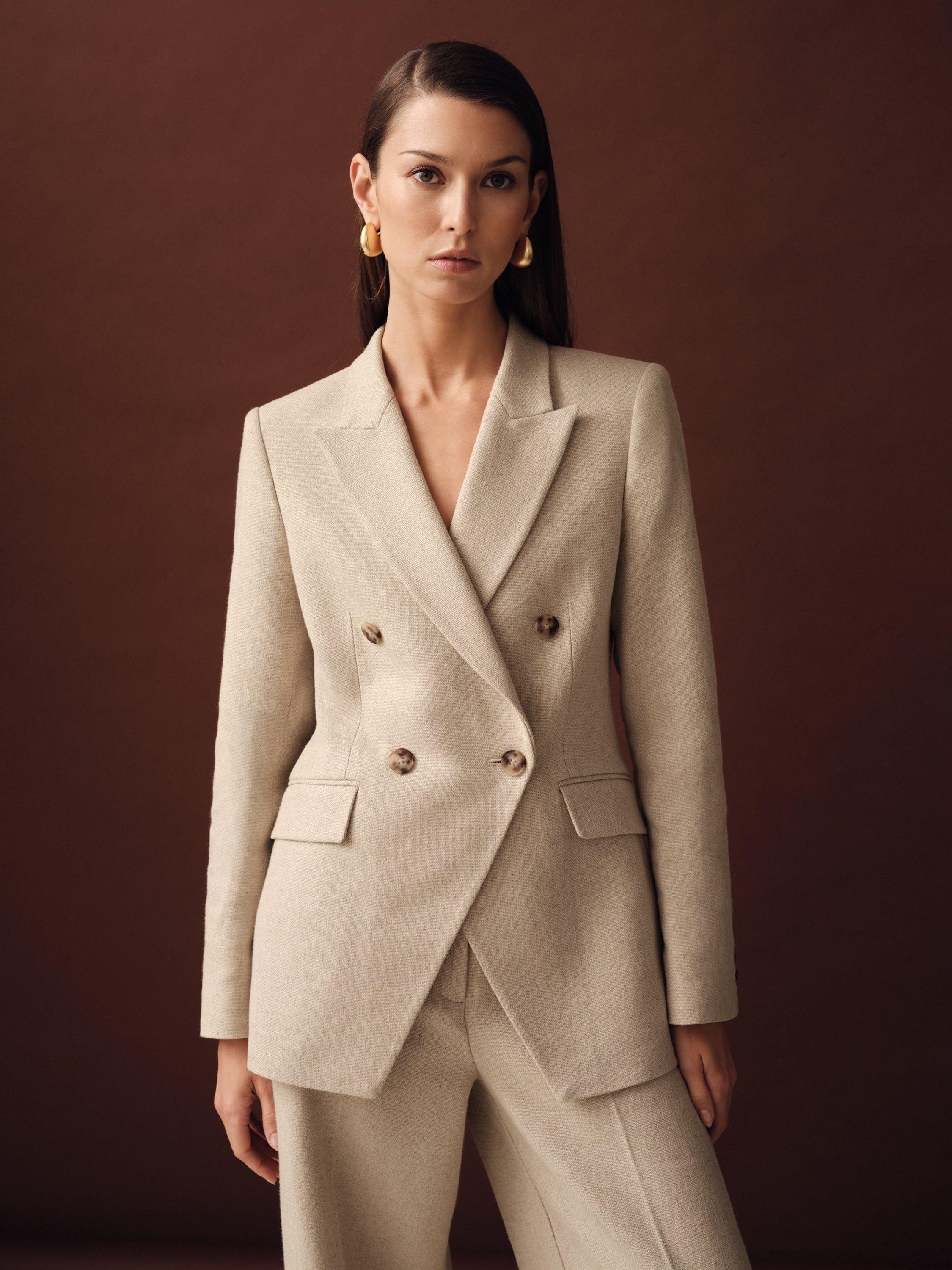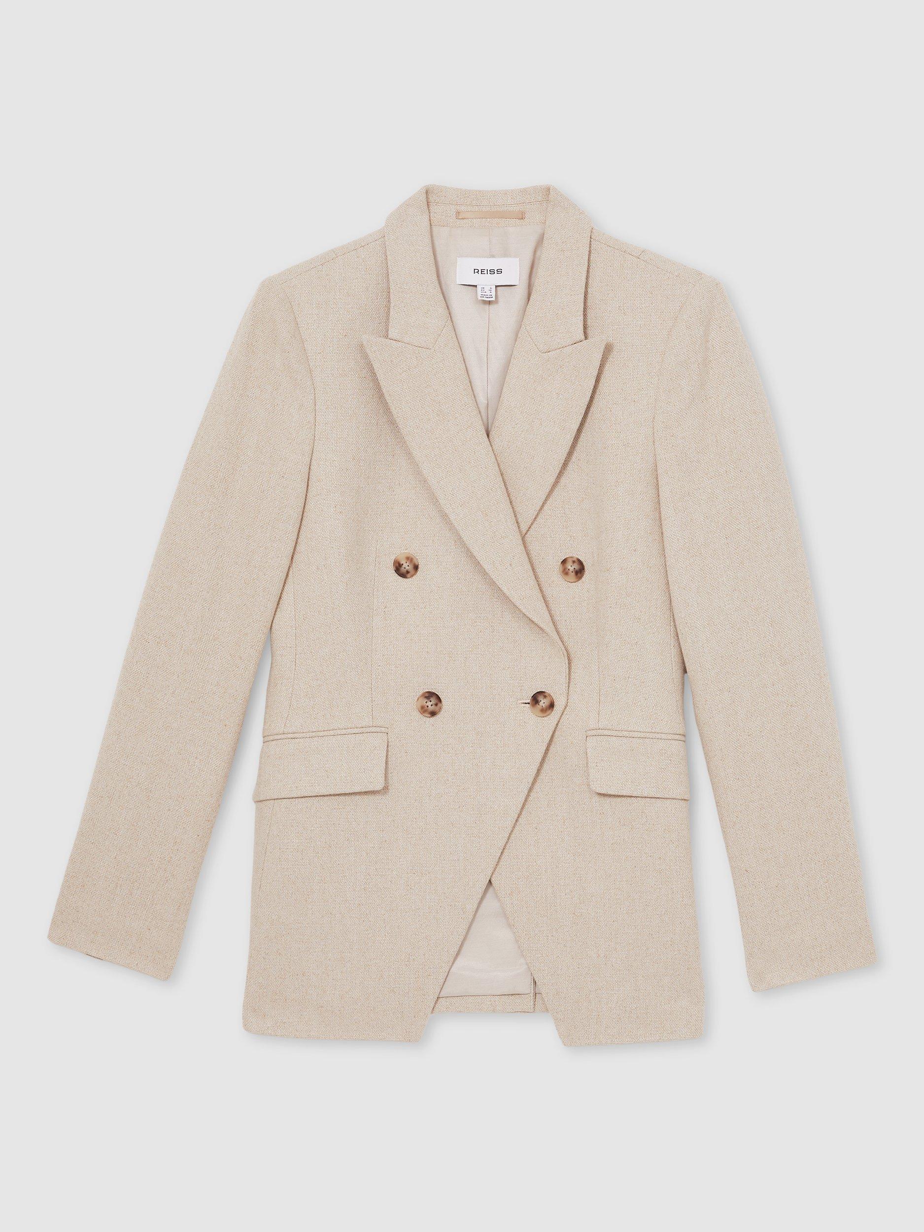 Elevating your look with ease, this notch hem double-breasted blazer from Reiss is made from a comfortable linen blend for a soft breathable feel.