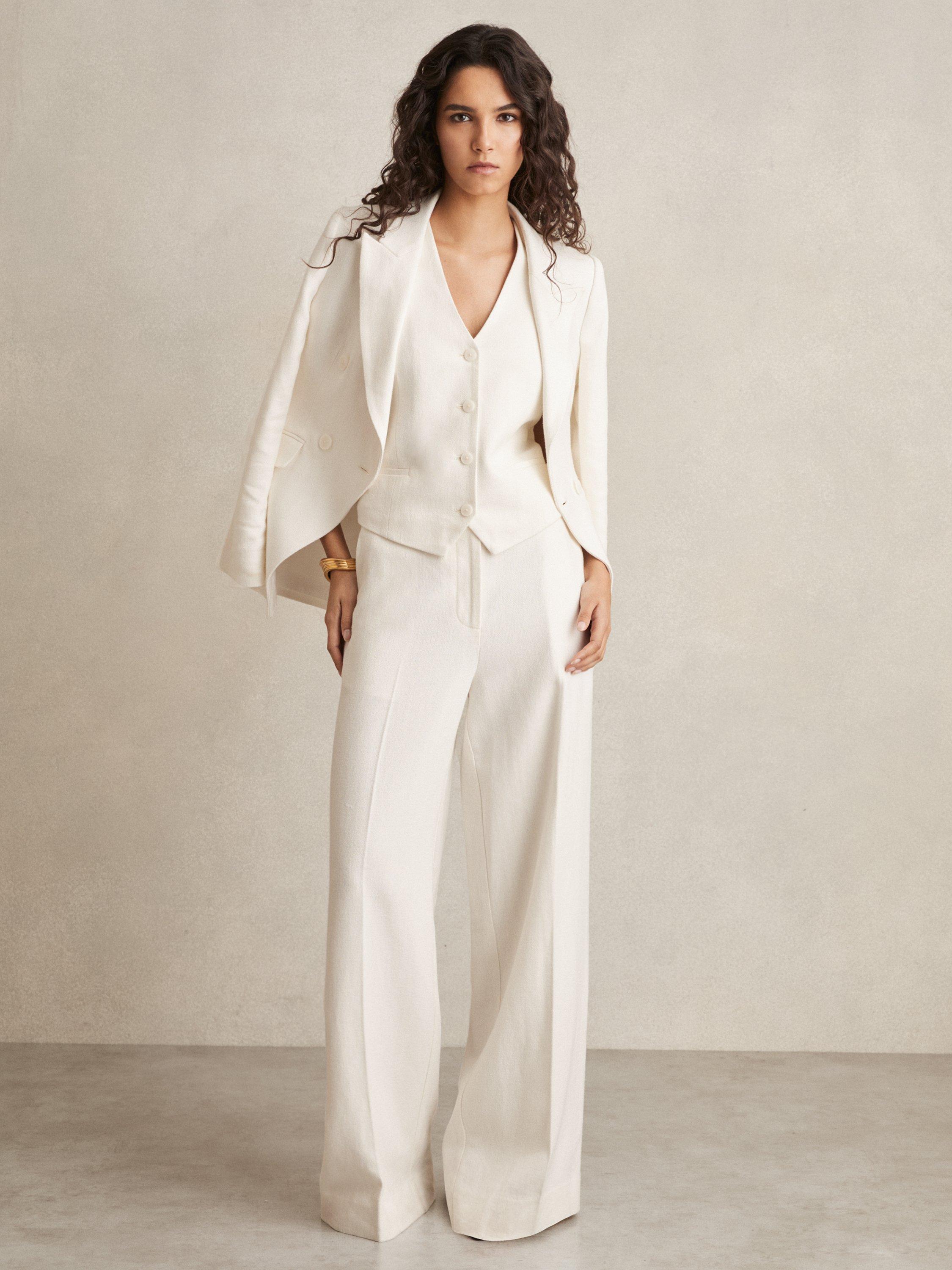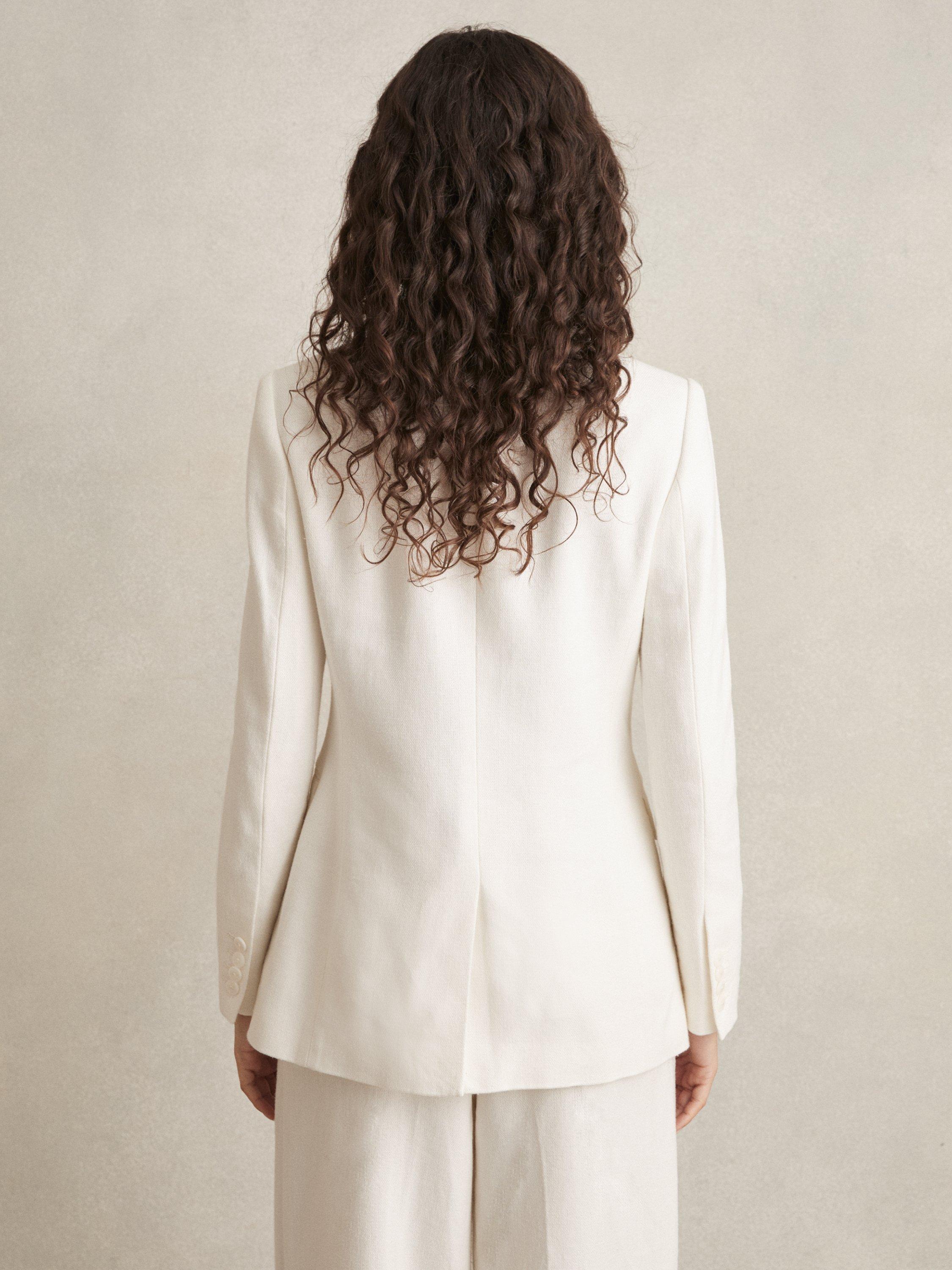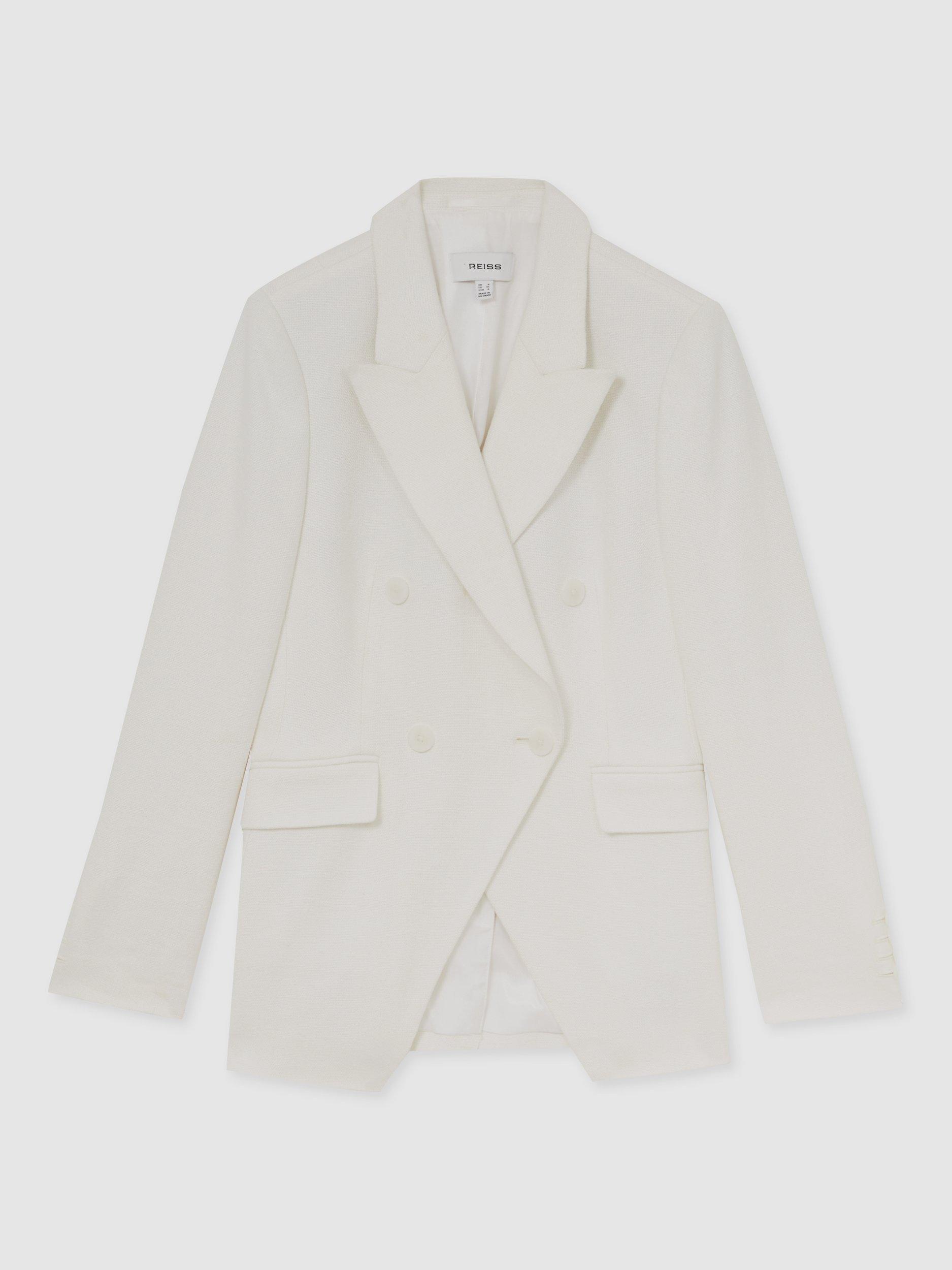 A smart summer staple, this double-breasted blazer from Reiss falls to the hip with a v-cut front hem.