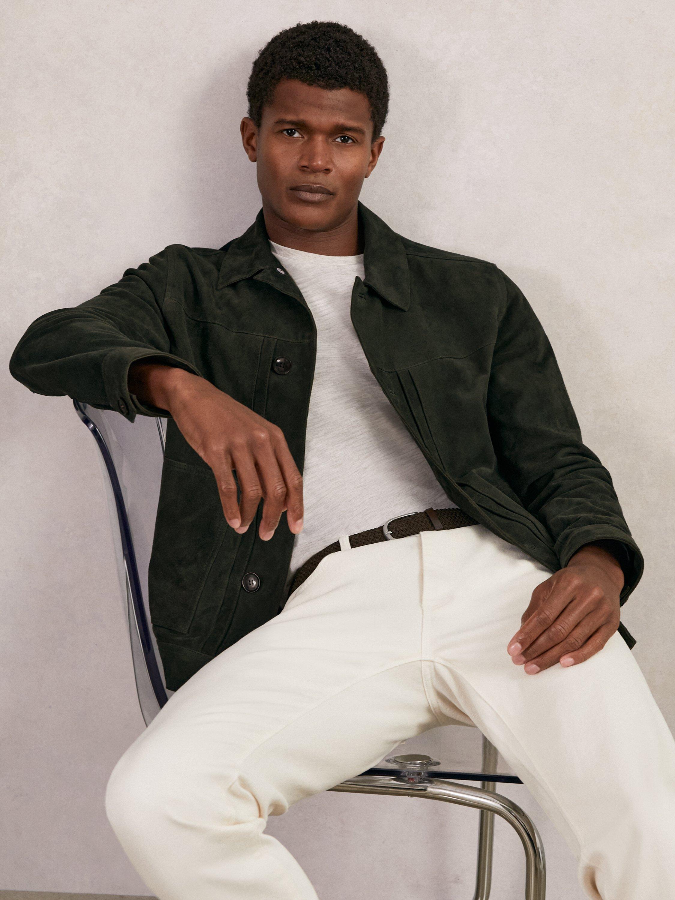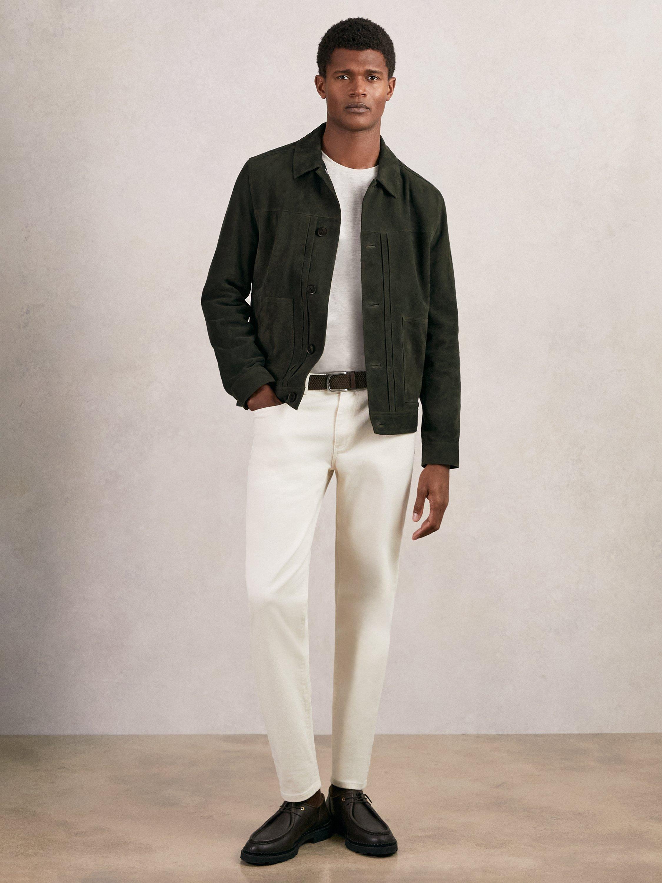 Slip into this suede jacket for confident style that sets you apart, zipped or open. Crafted from soft goat leather, it brings smart structure to your day, ensuring comfort and versatility wherever you go.