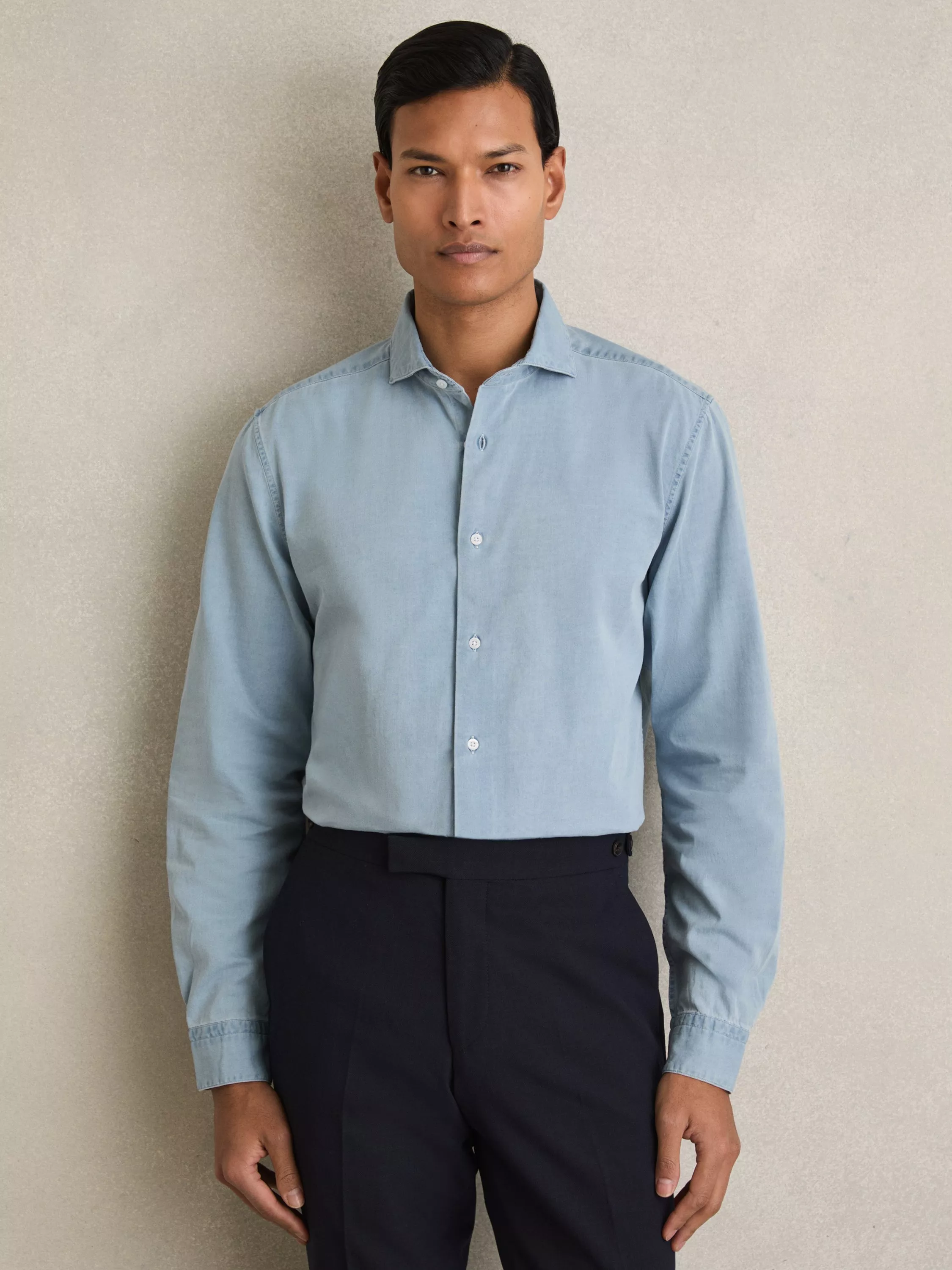 - Washed chambray fabrication