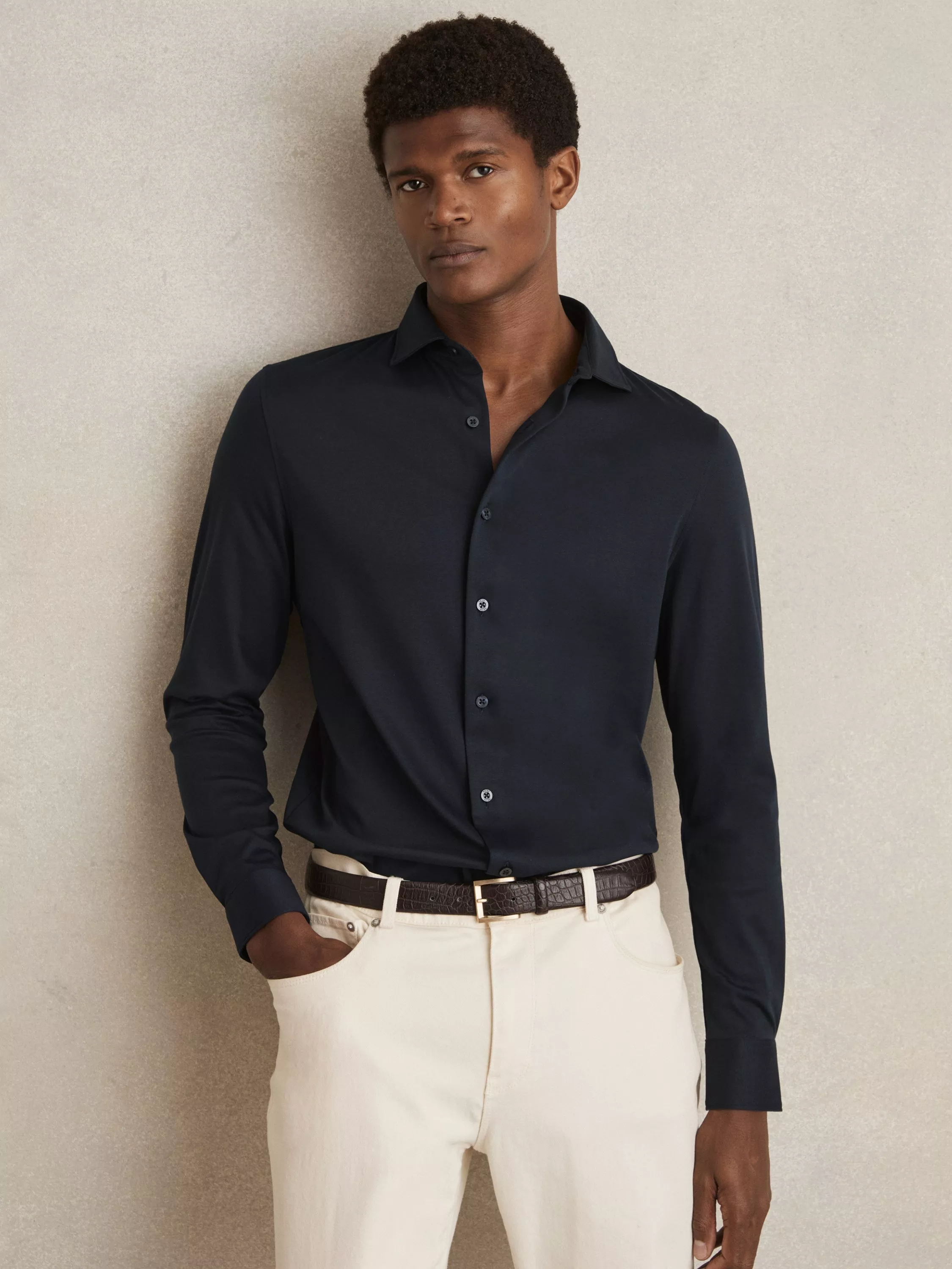 For comfortable wear that will keep you looking fresh, this cotton shirt from Reiss is cut with a relaxed silhouette.