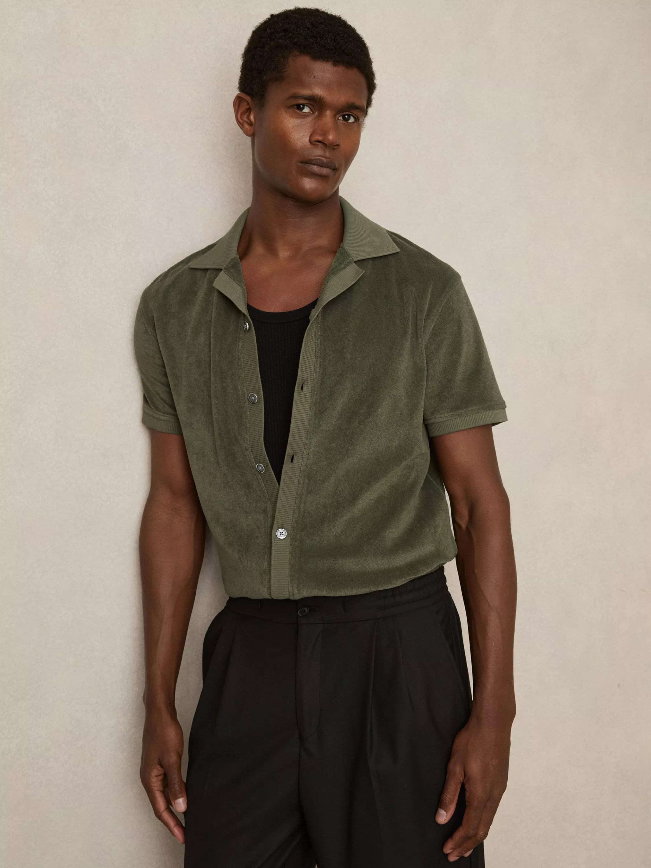 Rendered in soft towelling, the white Eden shirt from Reiss embodies effortless warm-weather style. A relaxed Cuban collar complements its laid-back feel, while ribbed trims and branded buttons add a touch of subtle refinement.