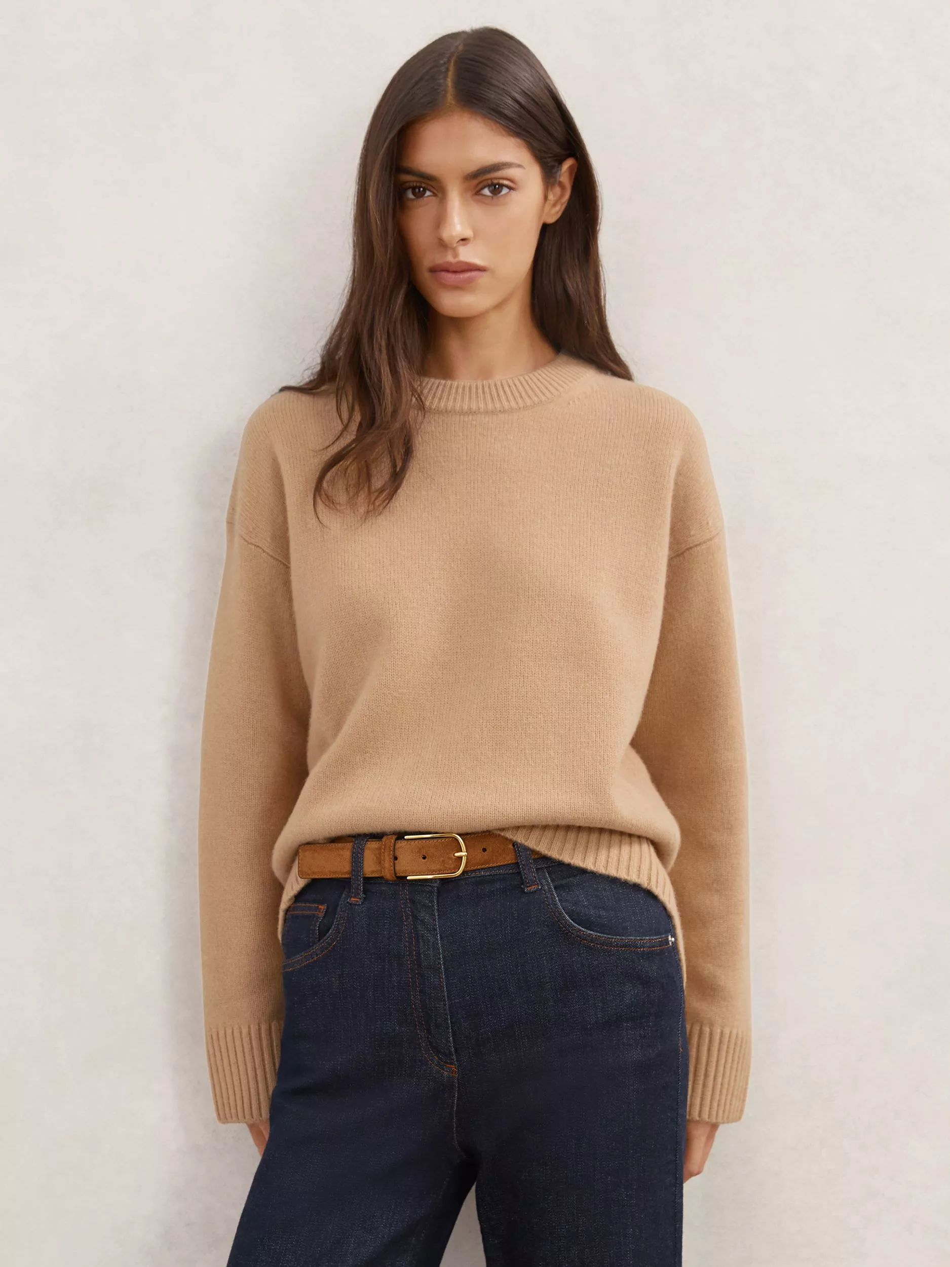 This wool blend jumper wraps you in soft comfort. The round neck and plain design make it easy to style for work or weekends, while the fine cashmere touch elevates your day with clever warmth.