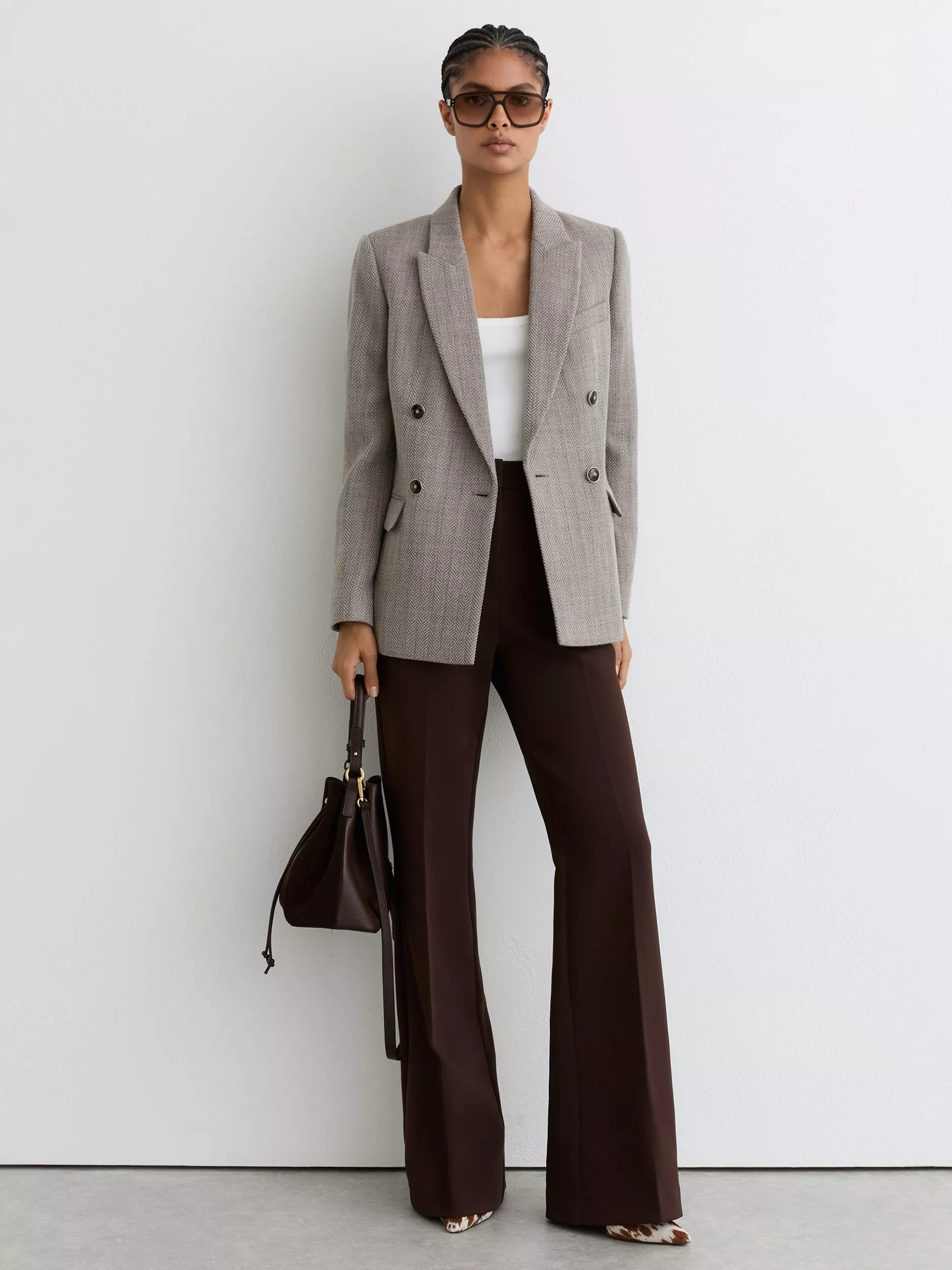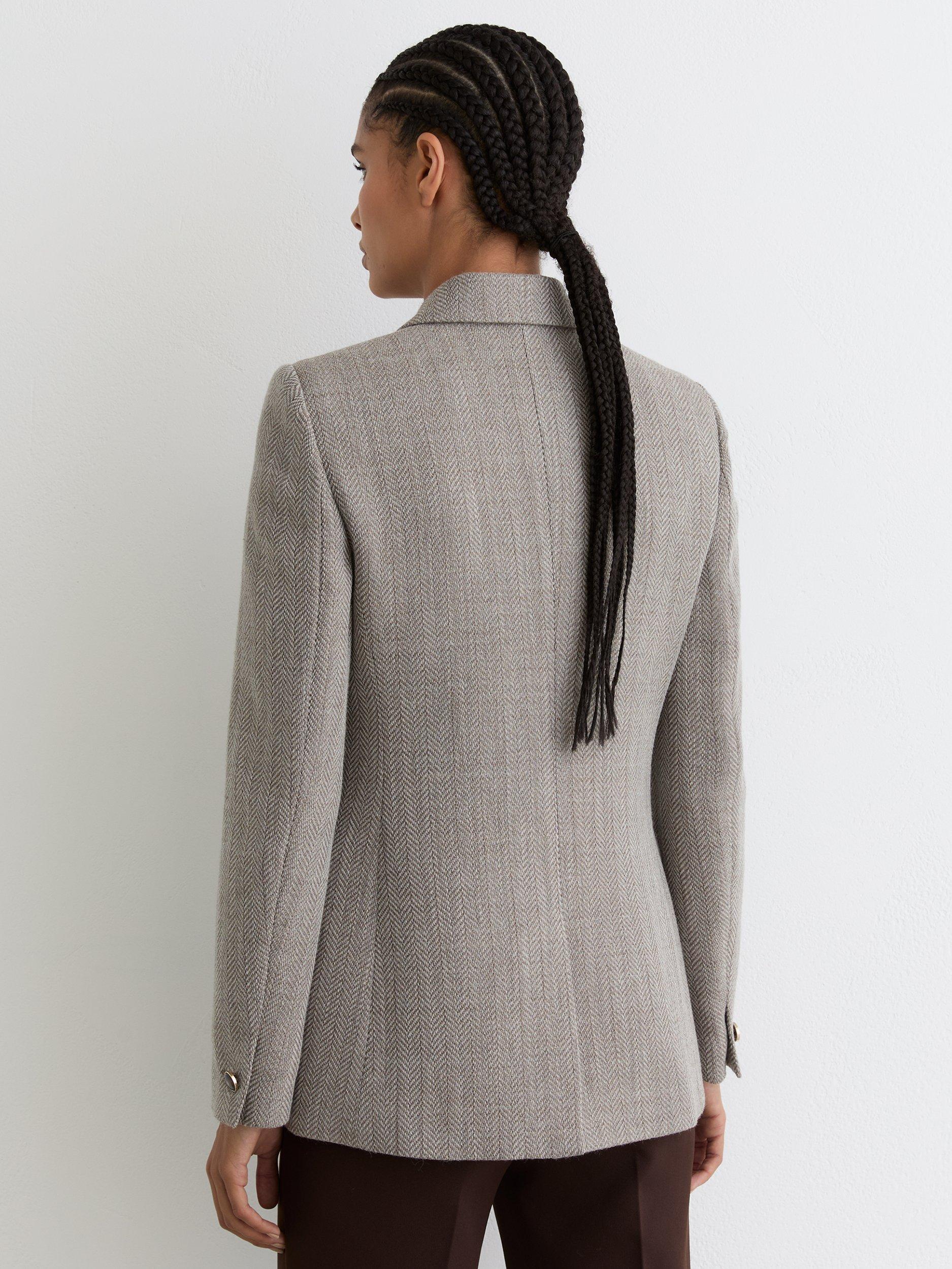 Reiss herringbone blazer for smart style. Its wool-rich blend offers comfort, while sharp tailoring and a double-breasted front keeps you ready for anything.