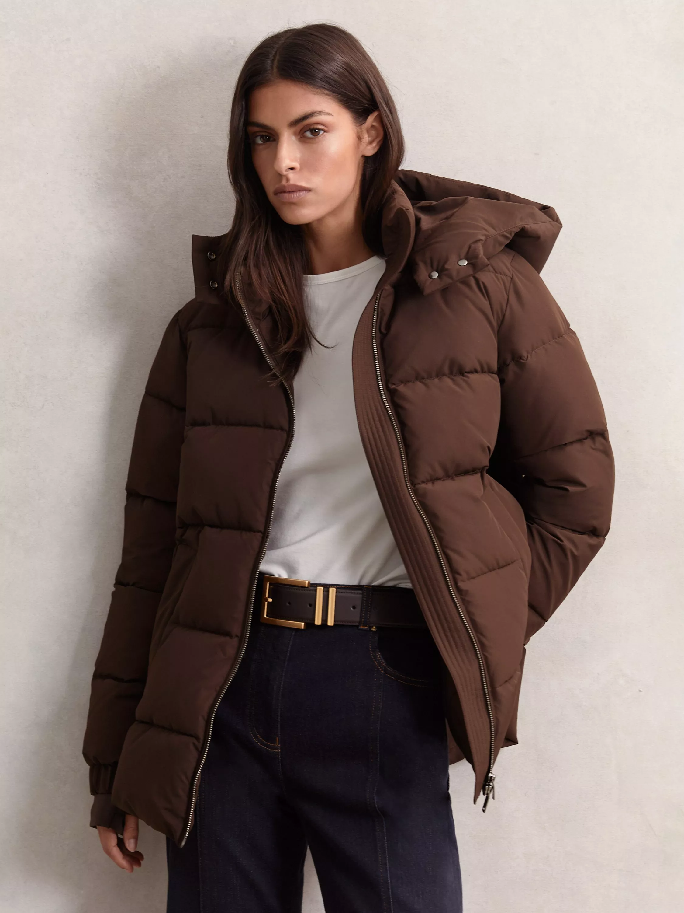 Conquer chilly days in the Reiss puffer jacket, crafted to keep you comfortable and ready for whatever comes your way. With a hood for extra warmth and long sleeves, you stay snug and stylish all winter long.