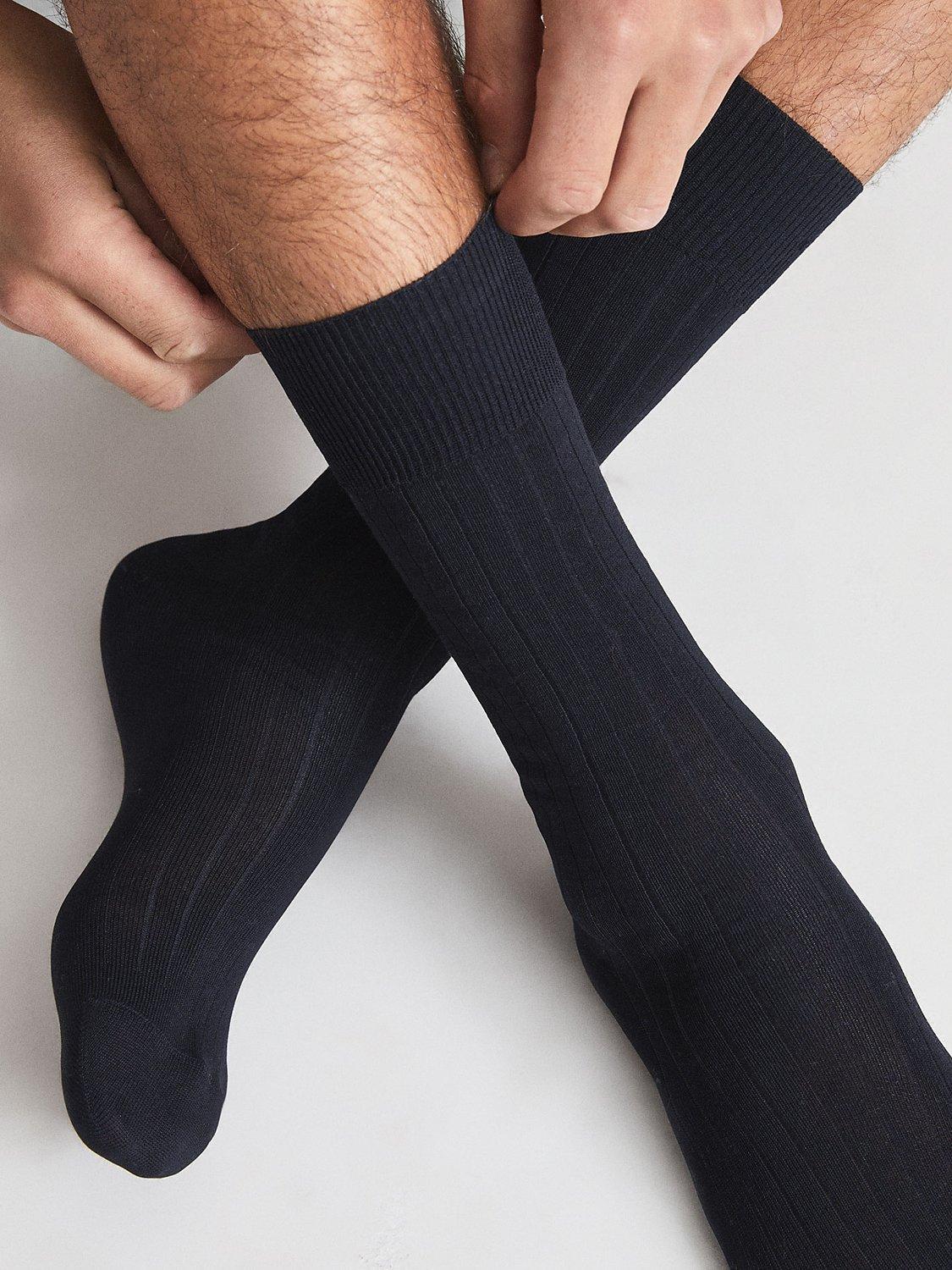 ReissFela Cotton Blend Ribbed Socks, Navy