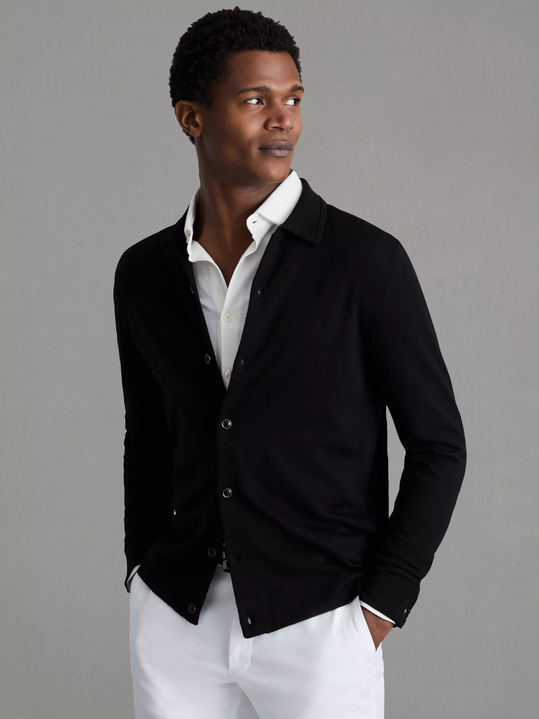 Set to serve you for cooler months, this collar neck cardigan from Reiss comes in a fuss-free design and is crafted from warming wool that's sure to help you brave the biting breeze.