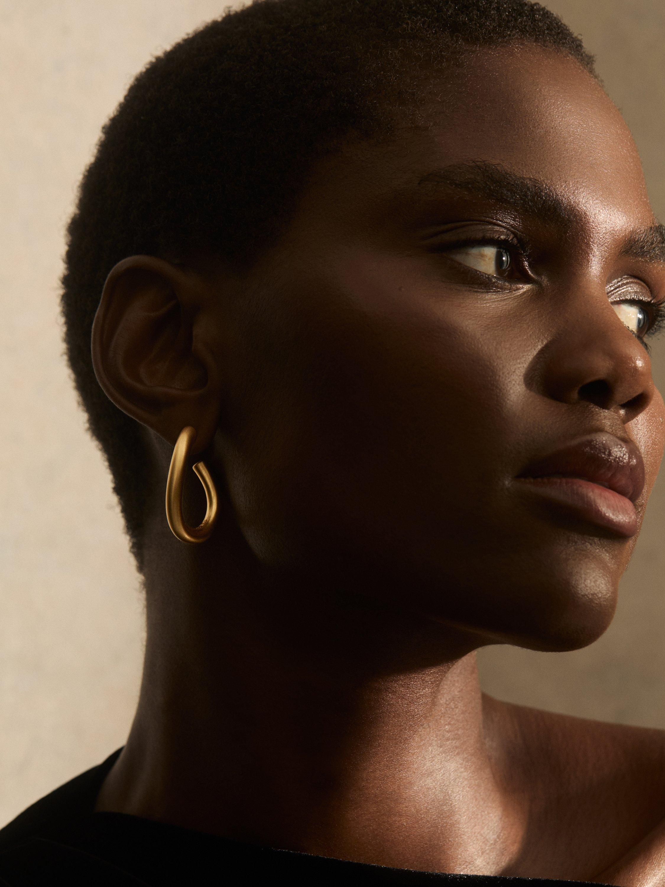 Make a modern style statement with Reiss's Freya Wave Hoop Earrings. Featuring sleek and organic lines, these earrings have hypoallergenic posts that are for pierced ears. They come packaged in a Reiss branded gift box.