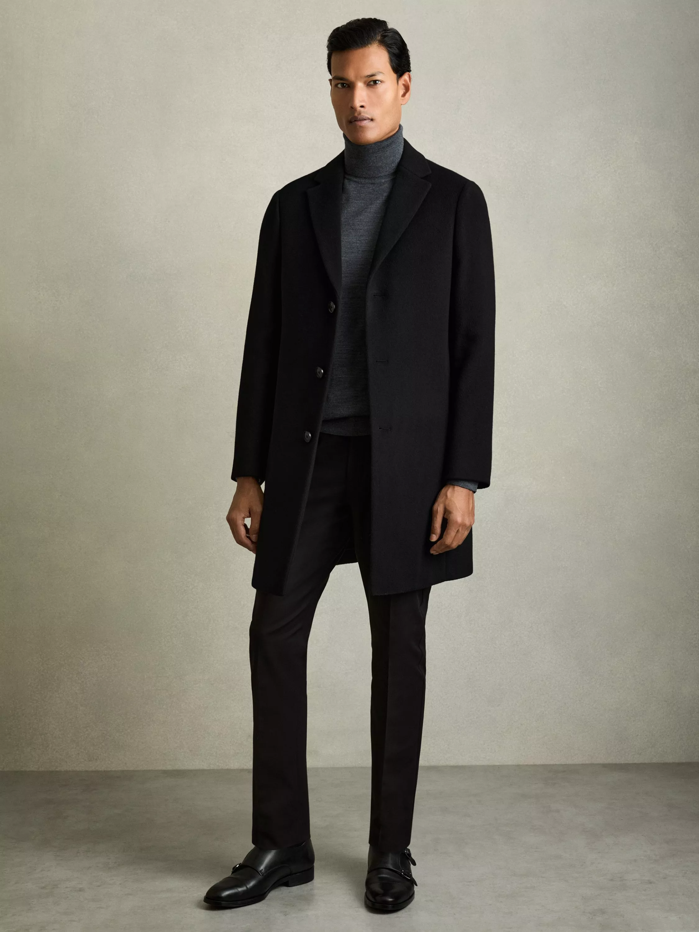 This single-breasted overcoat adds warmth without bulk thanks to its wool-blend construction, ensuring you feel confident and ready to take on the colder season.
