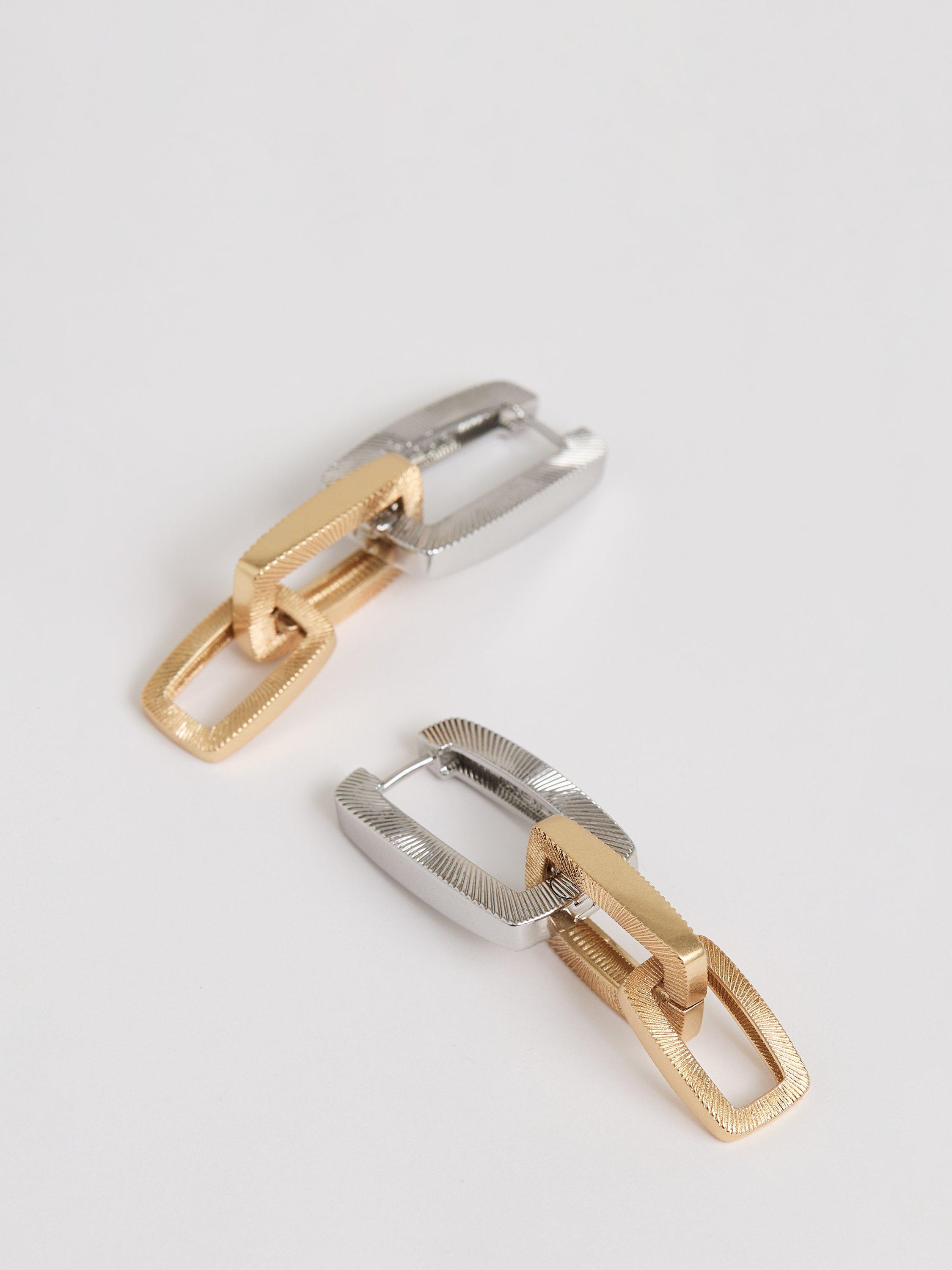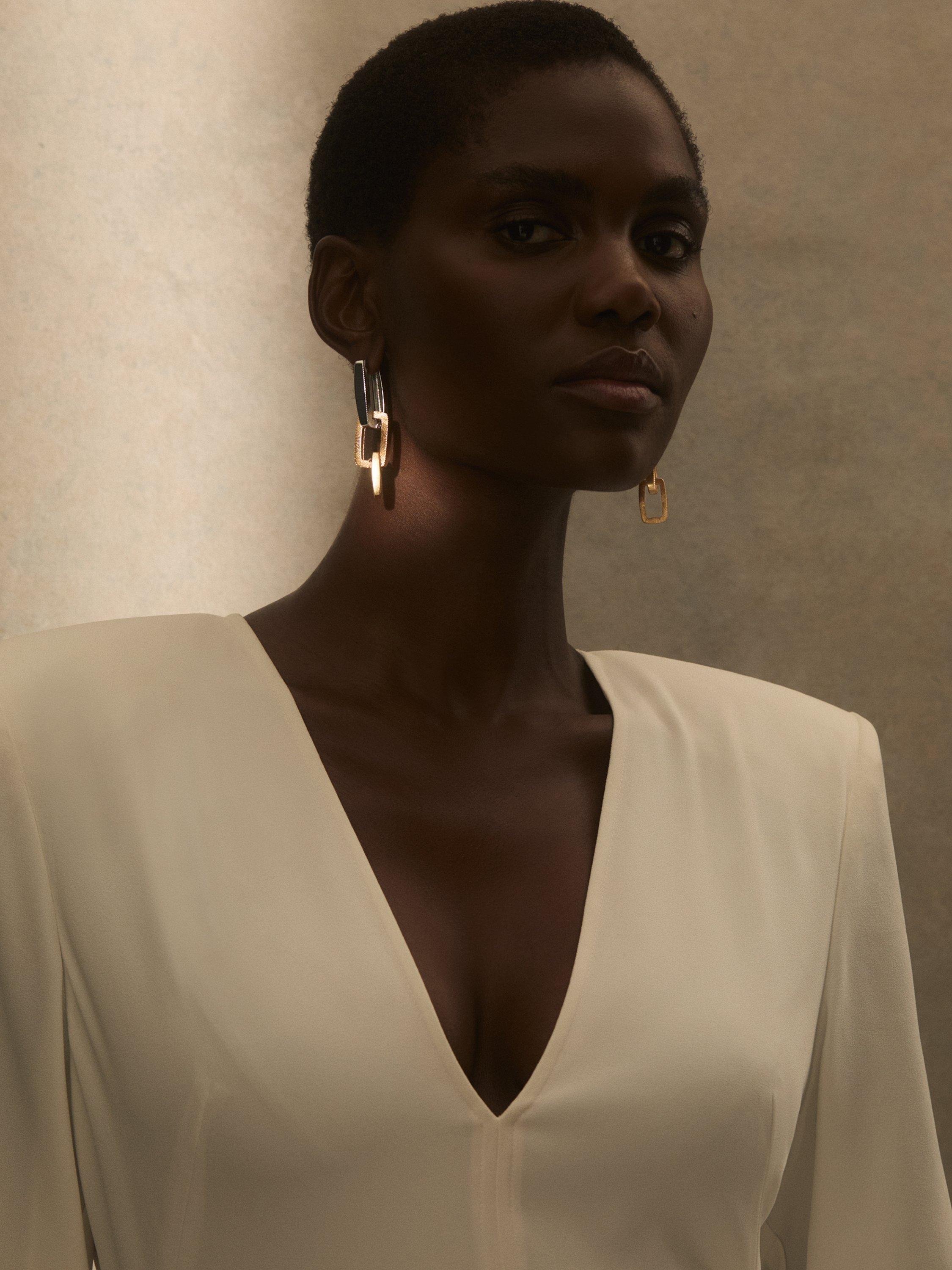 For chic simplicity, try Reiss's Gabriella Graphic Drop Earrings. Bespoke textured links intertwine in smooth geometry. Complete with a Reiss-branded gift box, these earrings are perfect for elevating your look.