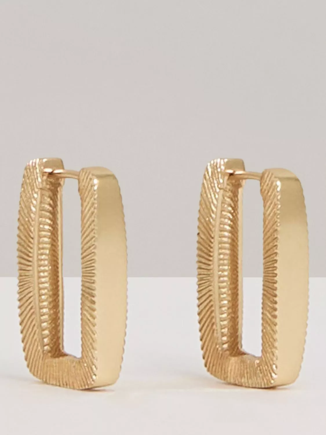 For chic simplicity, try Reiss's Grace Graphic Hoop Earrings. Featuring a bespoke textured link and a discreet hinged closure, these earrings offer a modern yet elegant design. They are suitable for pierced ears only and come complete with a Reiss-branded gift box.