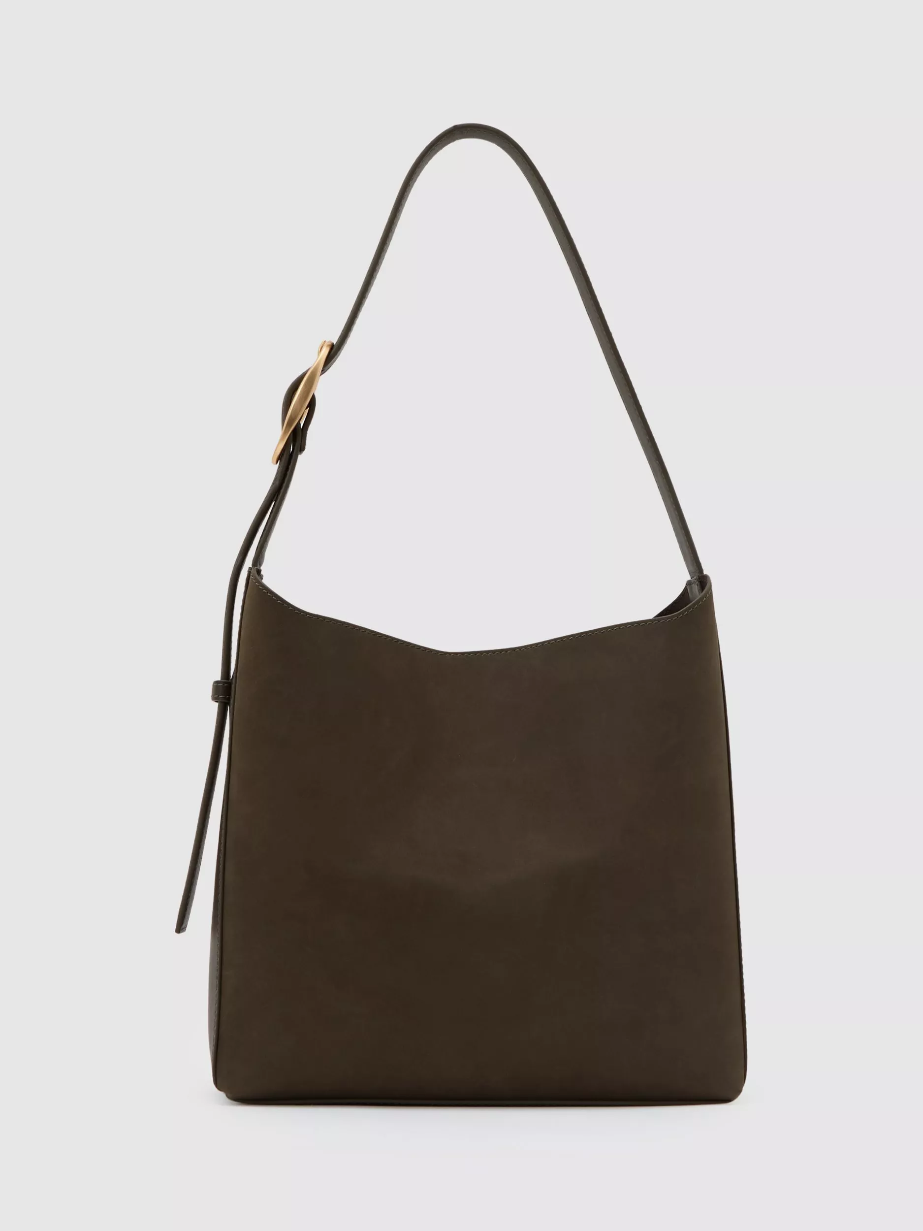 Crafted from supple suede and smooth leather, the Greta tote bag is finished with an adjustable shoulder strap that threads through a gold-tone buckle on one side.