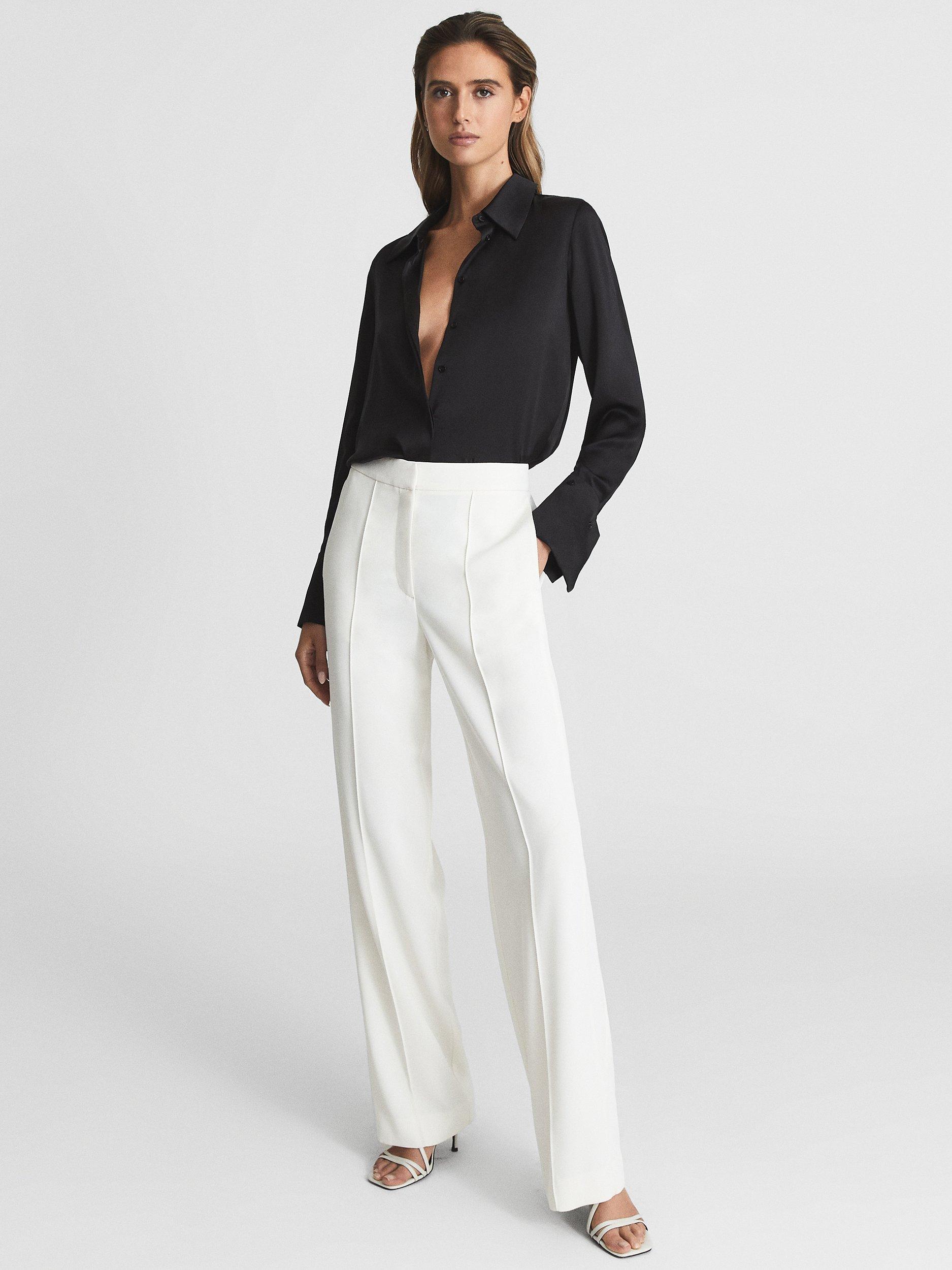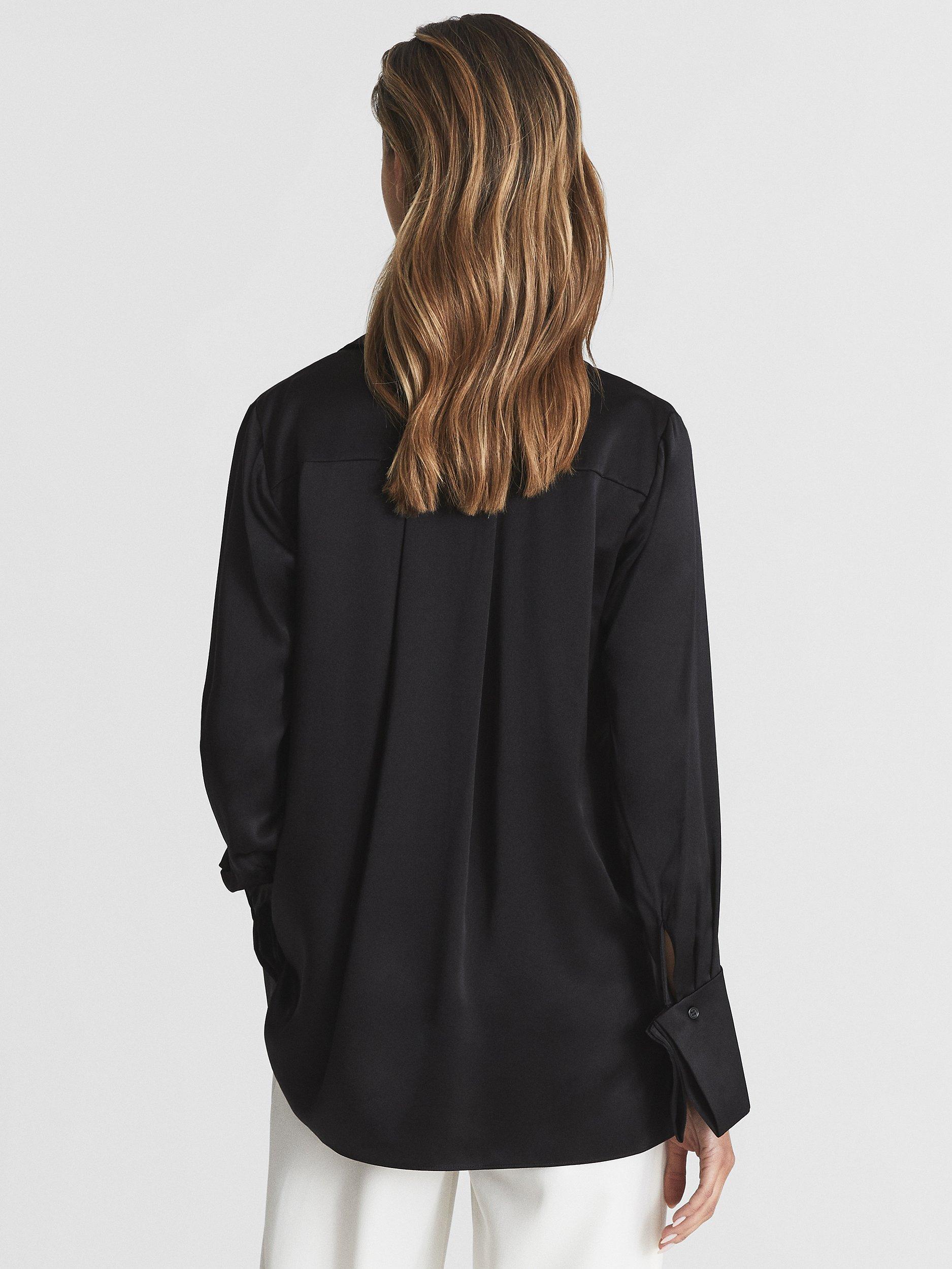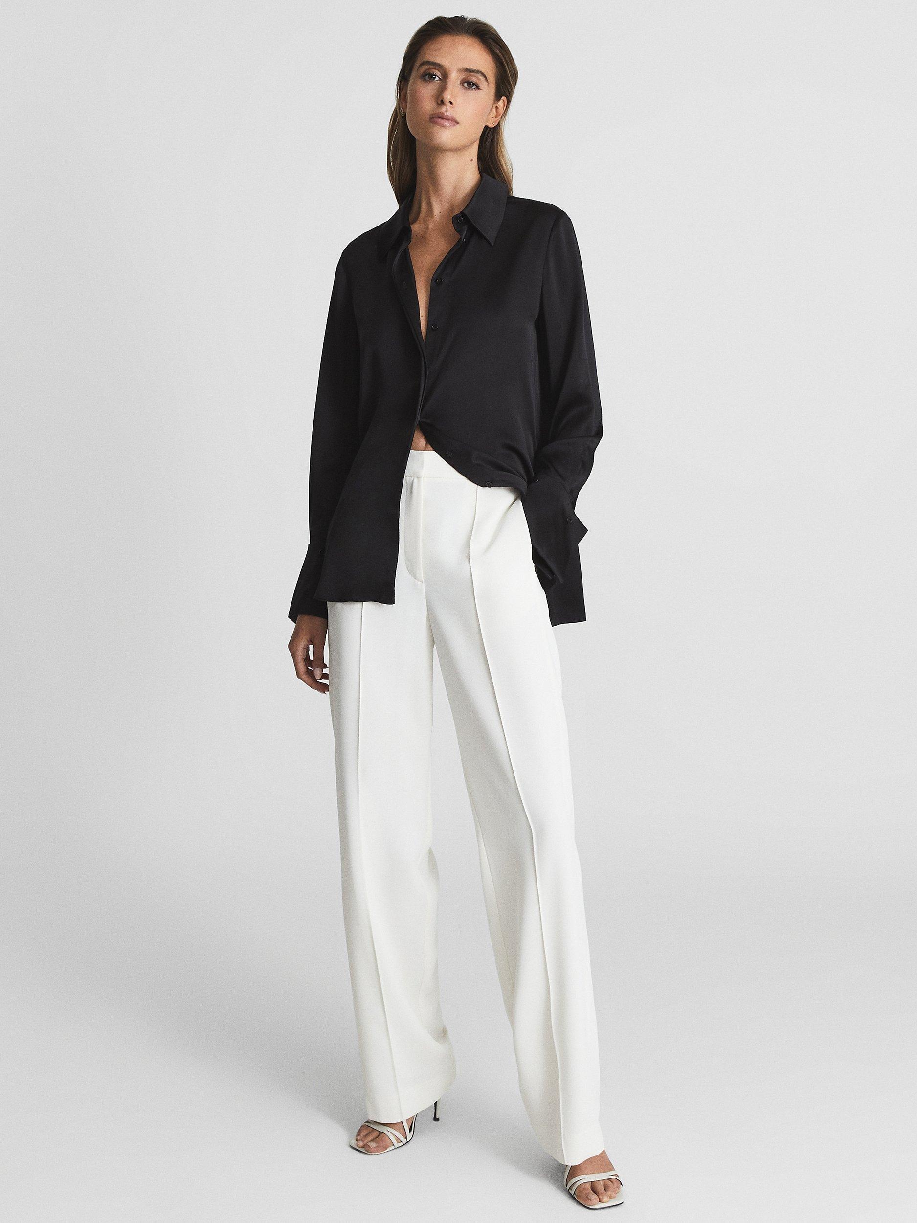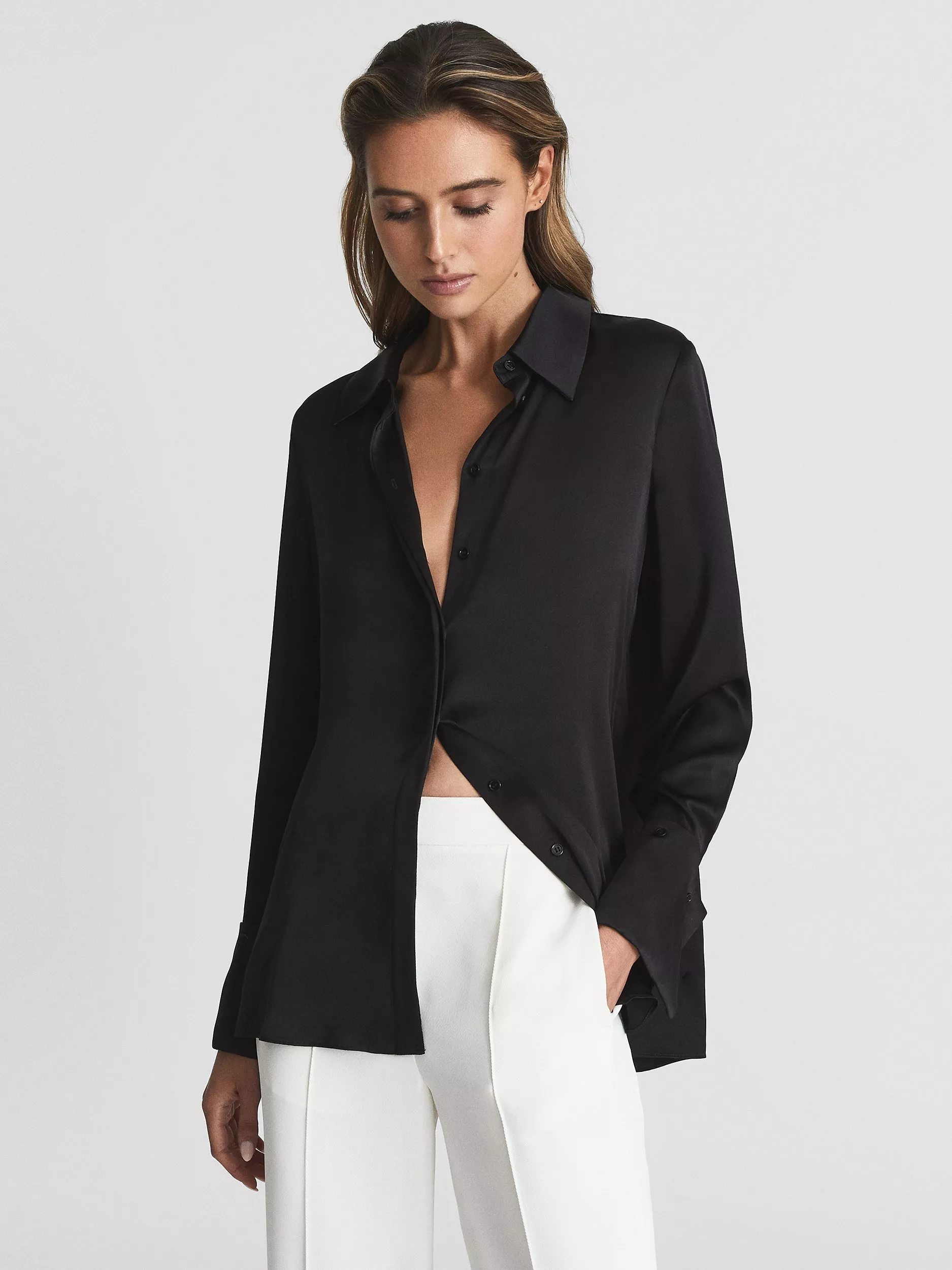 Framed with a collared neck and long sleeves, it is luxuriously smooth in pure silk and partners well with tailored trousers for a smart office vibe that slots seamlessly into the bar for evening drinks with friends.