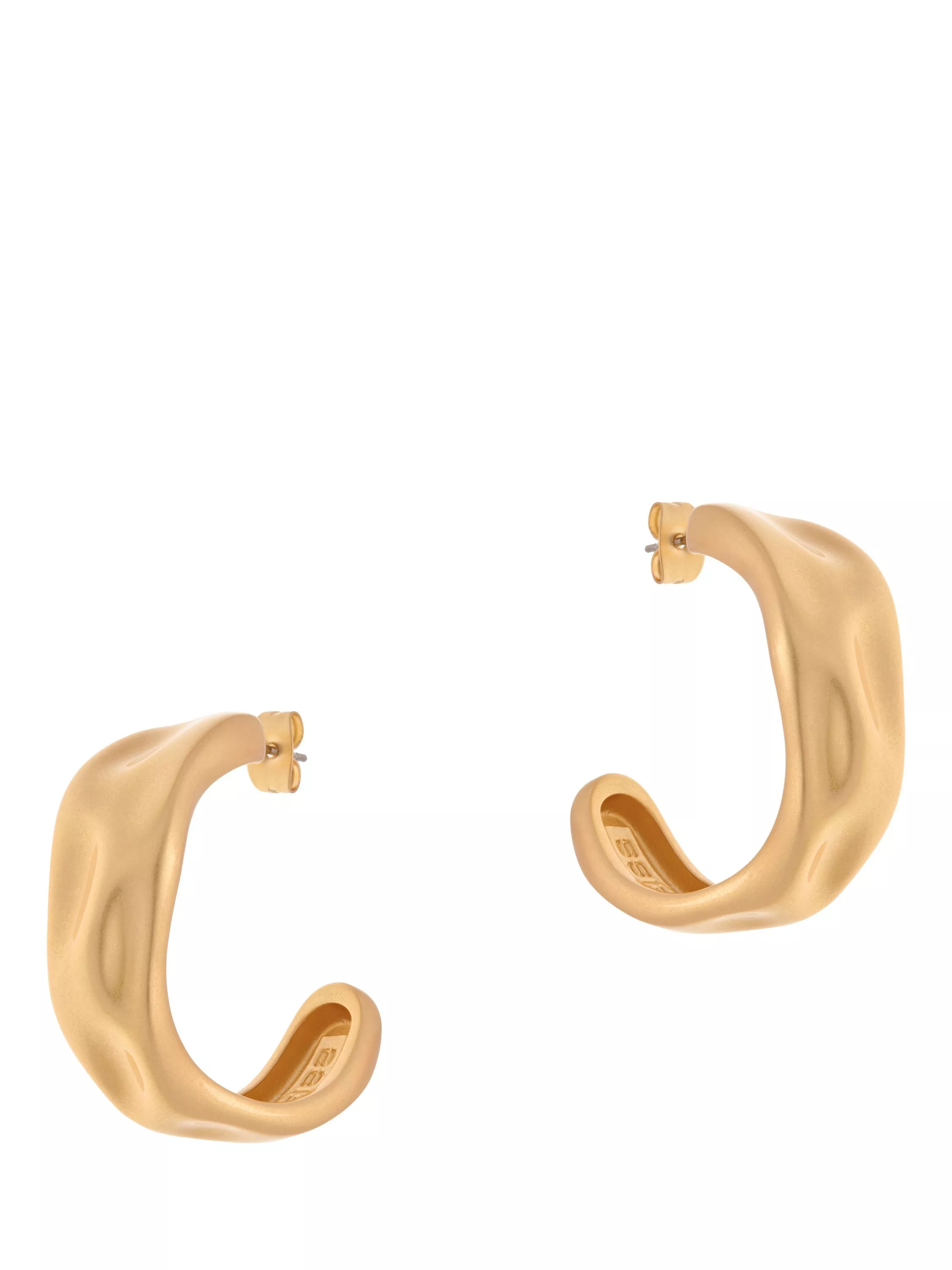 The gently contoured, hammered surface of these hoops creates a light-catching effect resembling liquid metal. Modern yet elegant, these versatile earrings have hypoallergenic posts for comfortable all-day wear.