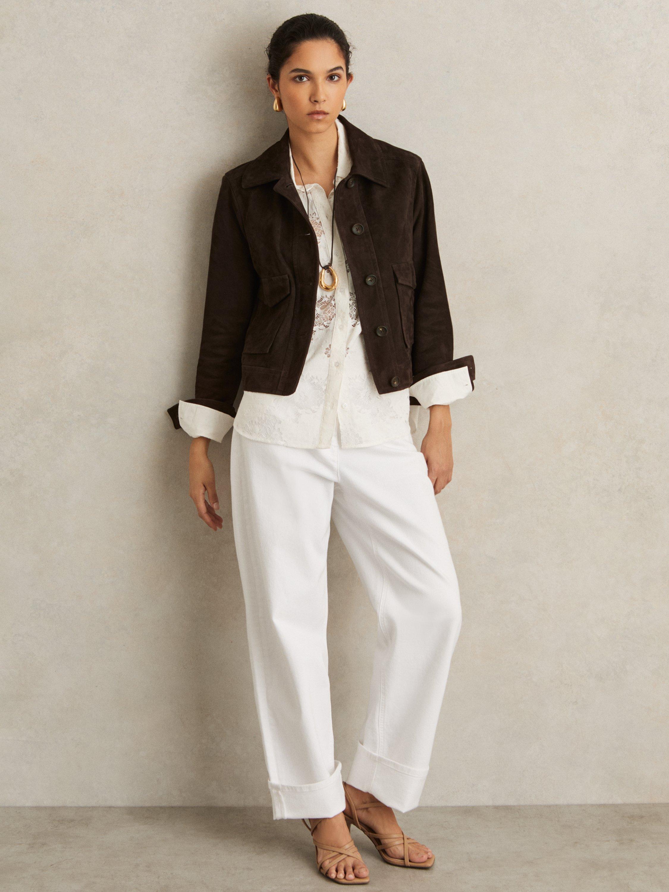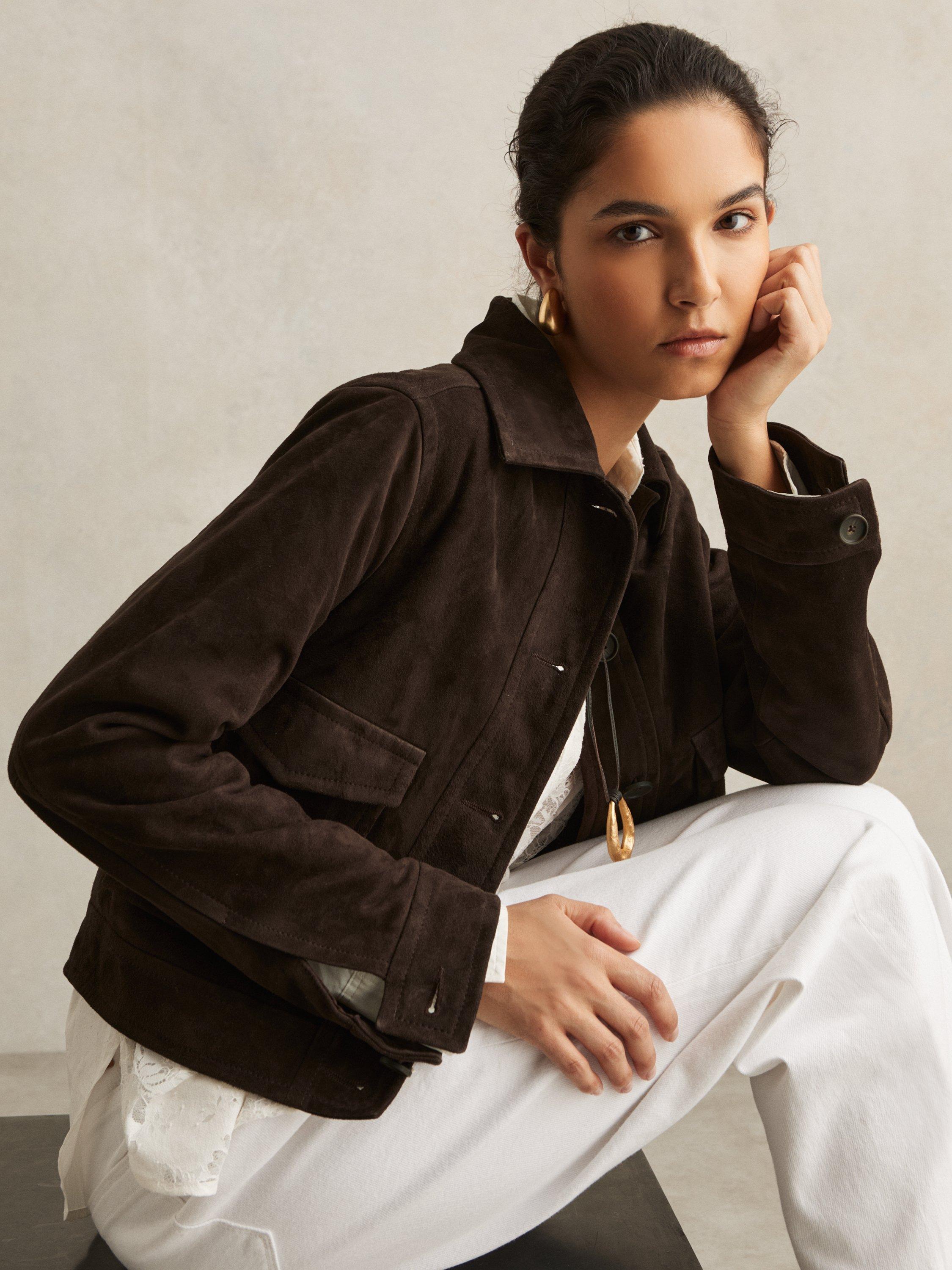 Begging to be worn again and again, this cropped jacket by Reiss is crafted from pure suede with a button front.