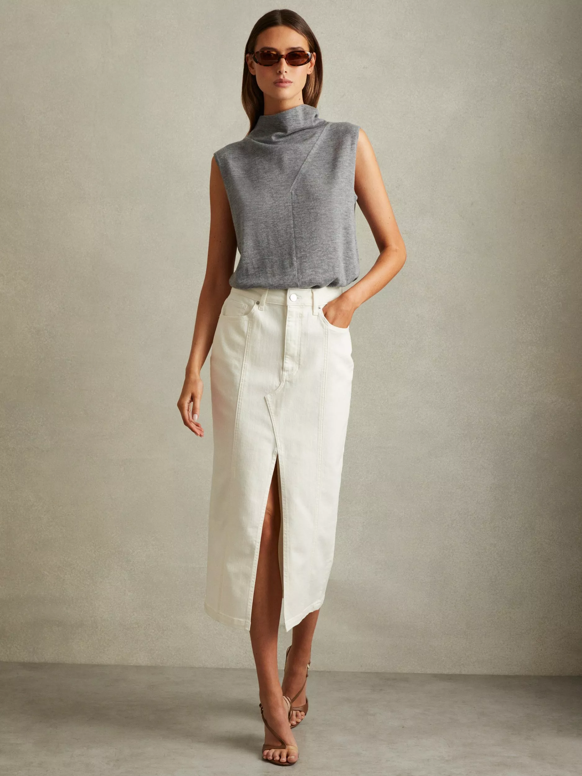 Topped with a slouch neckline, this lightweight knit top from Reiss is made from pure wool for an ultra-cosy and luxuriously warm finish.
