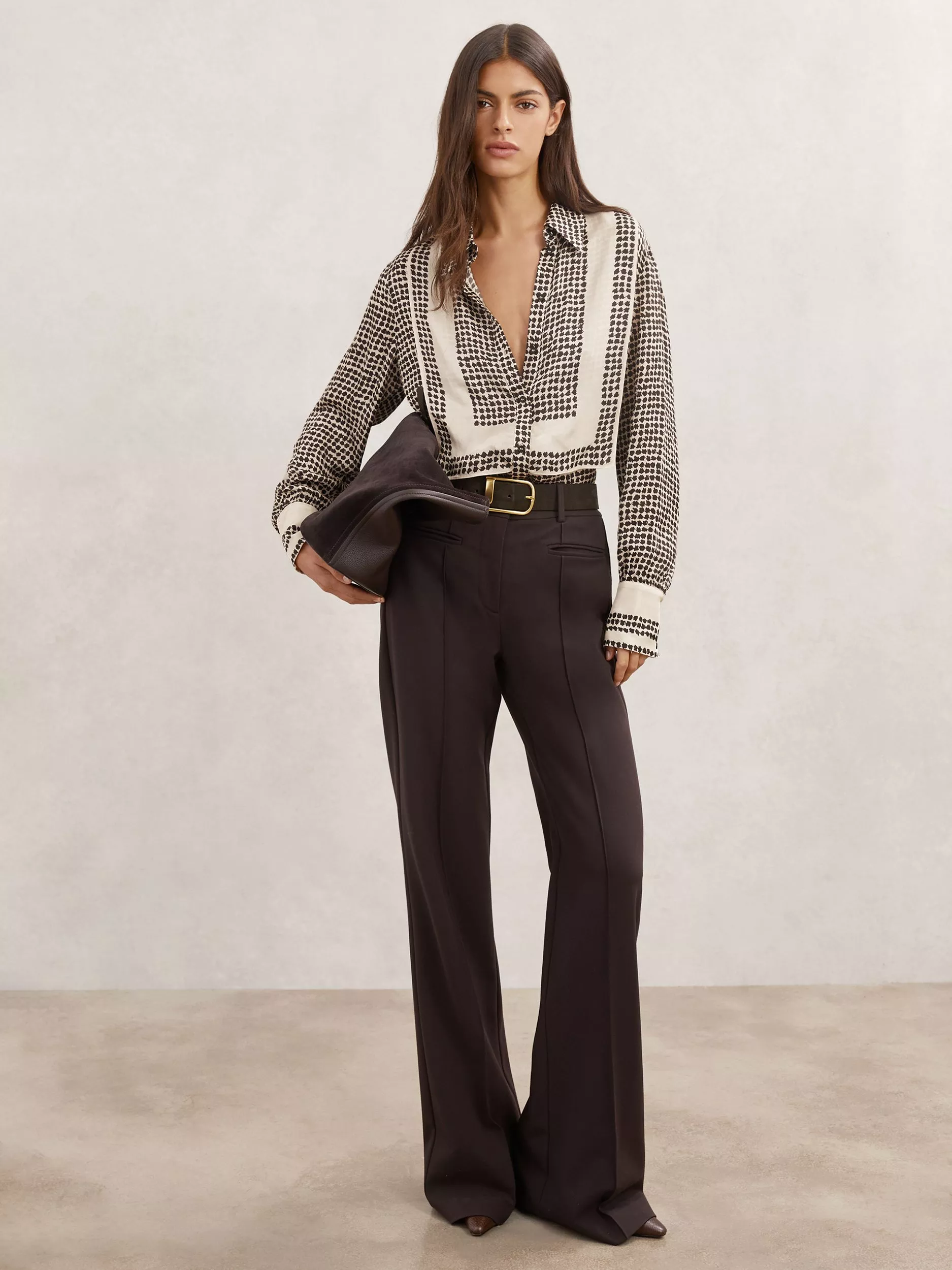 A light and effortless blouse from Reiss, made from light viscose. Featuring a collar and long sleeves, it adds impact with its eye-catching abstract pattern. Casual, comfortable, and effortlessly chic.