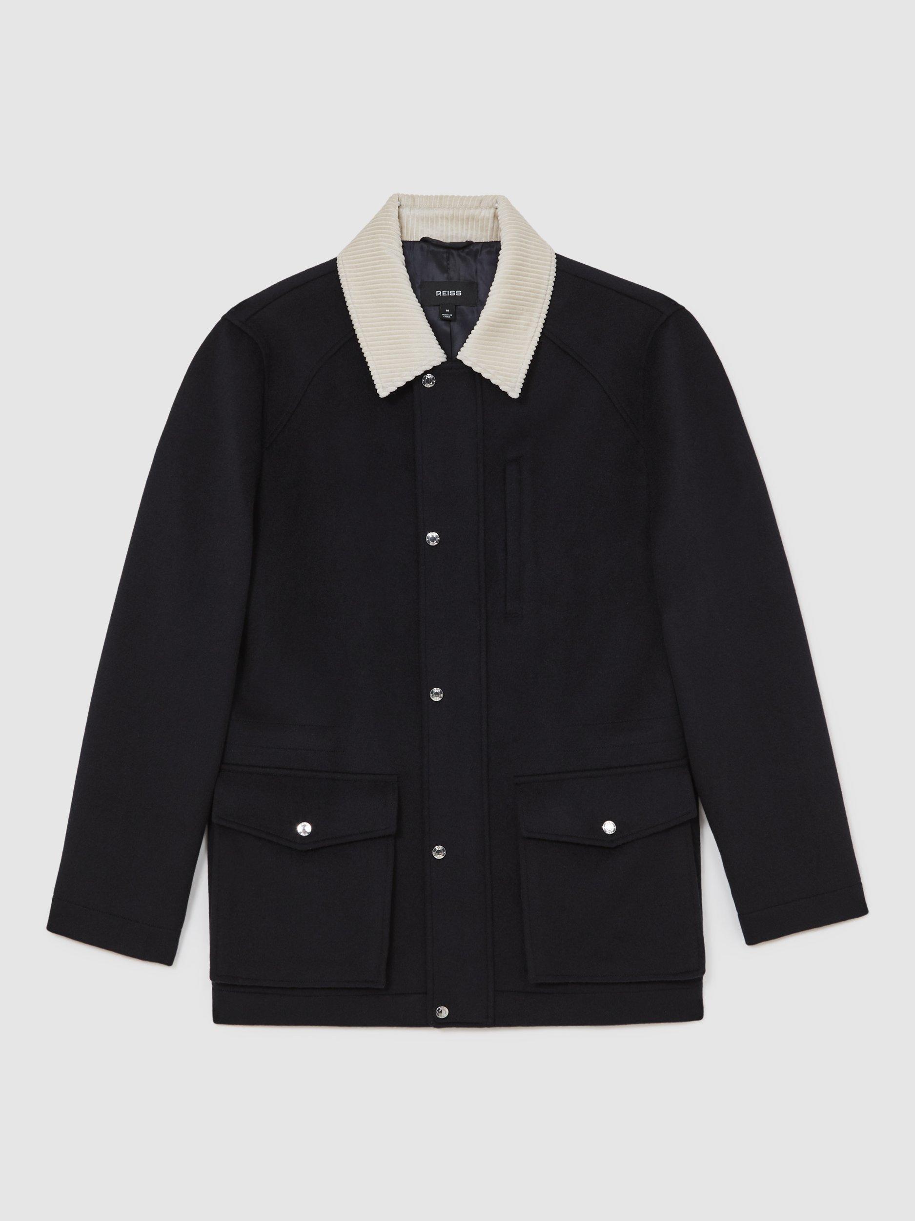 - 53% wool, 47% polyester, Collar: 100% cotton