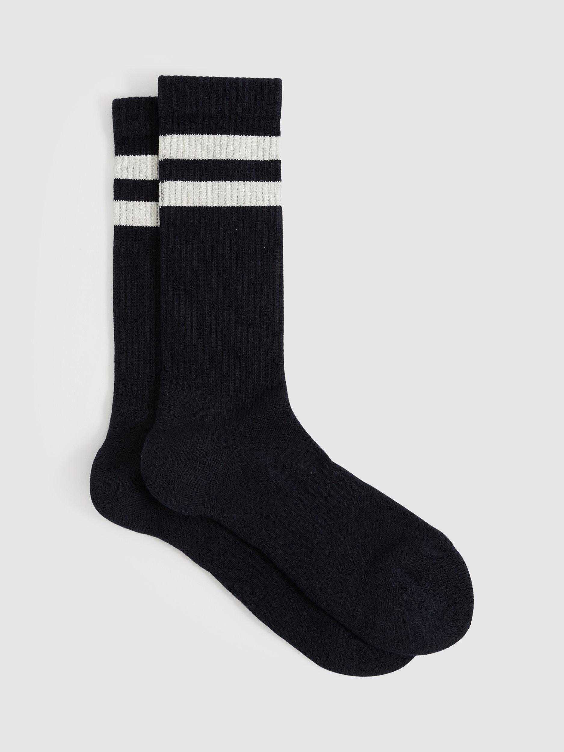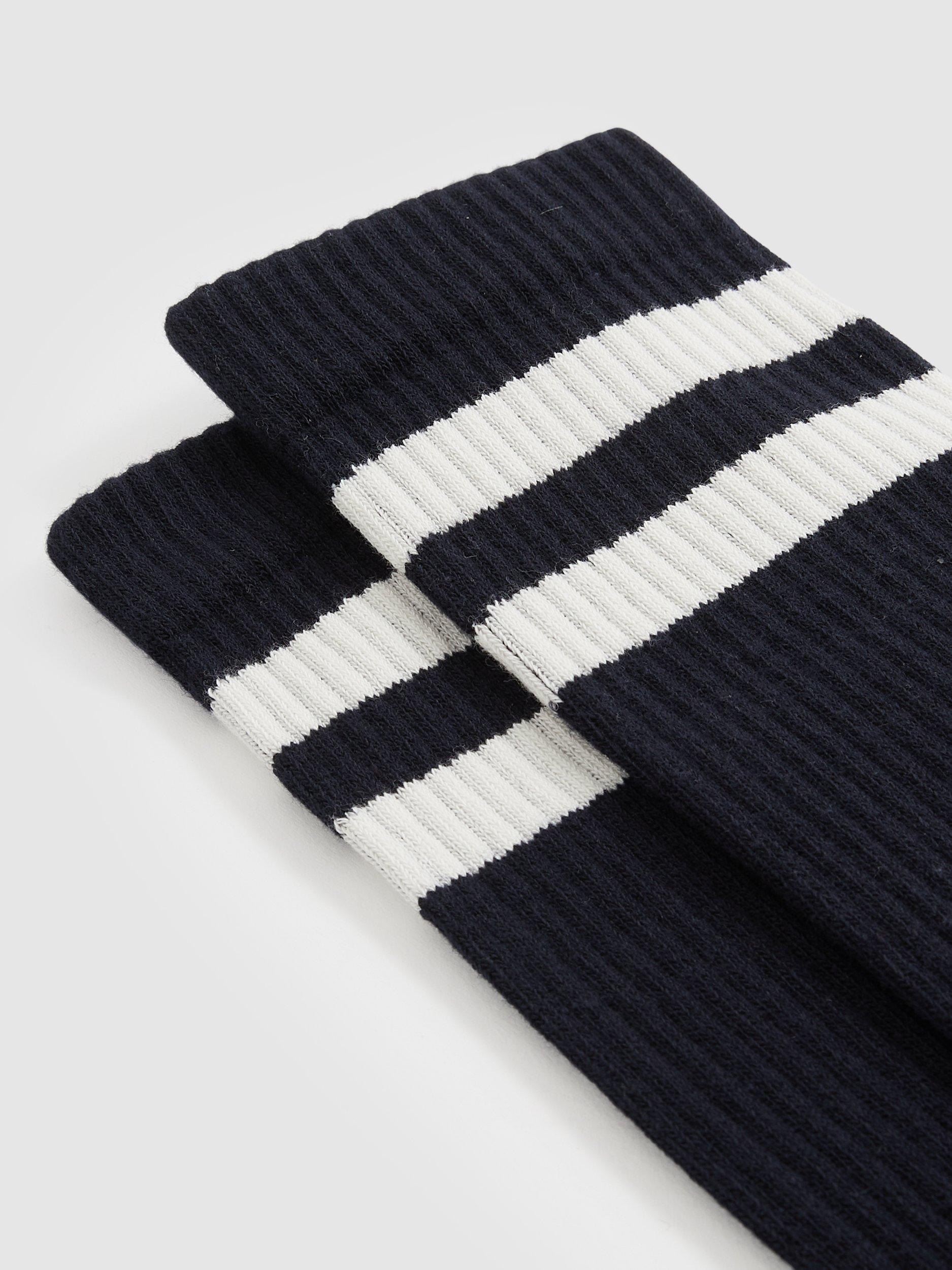 A pair of double stripe crew socks by Reiss that's cut from a cotton-rich blend for breathable wear all day long.