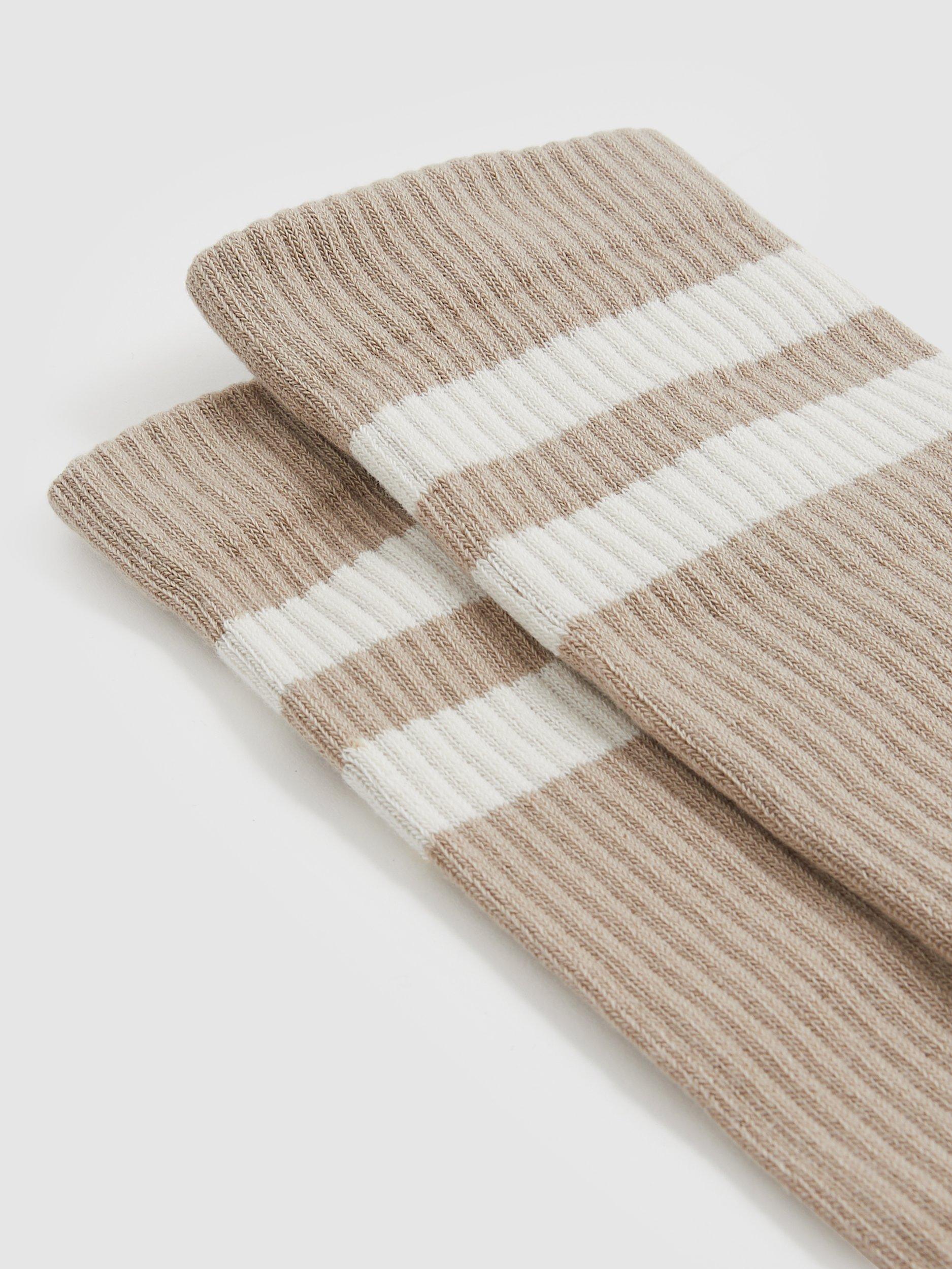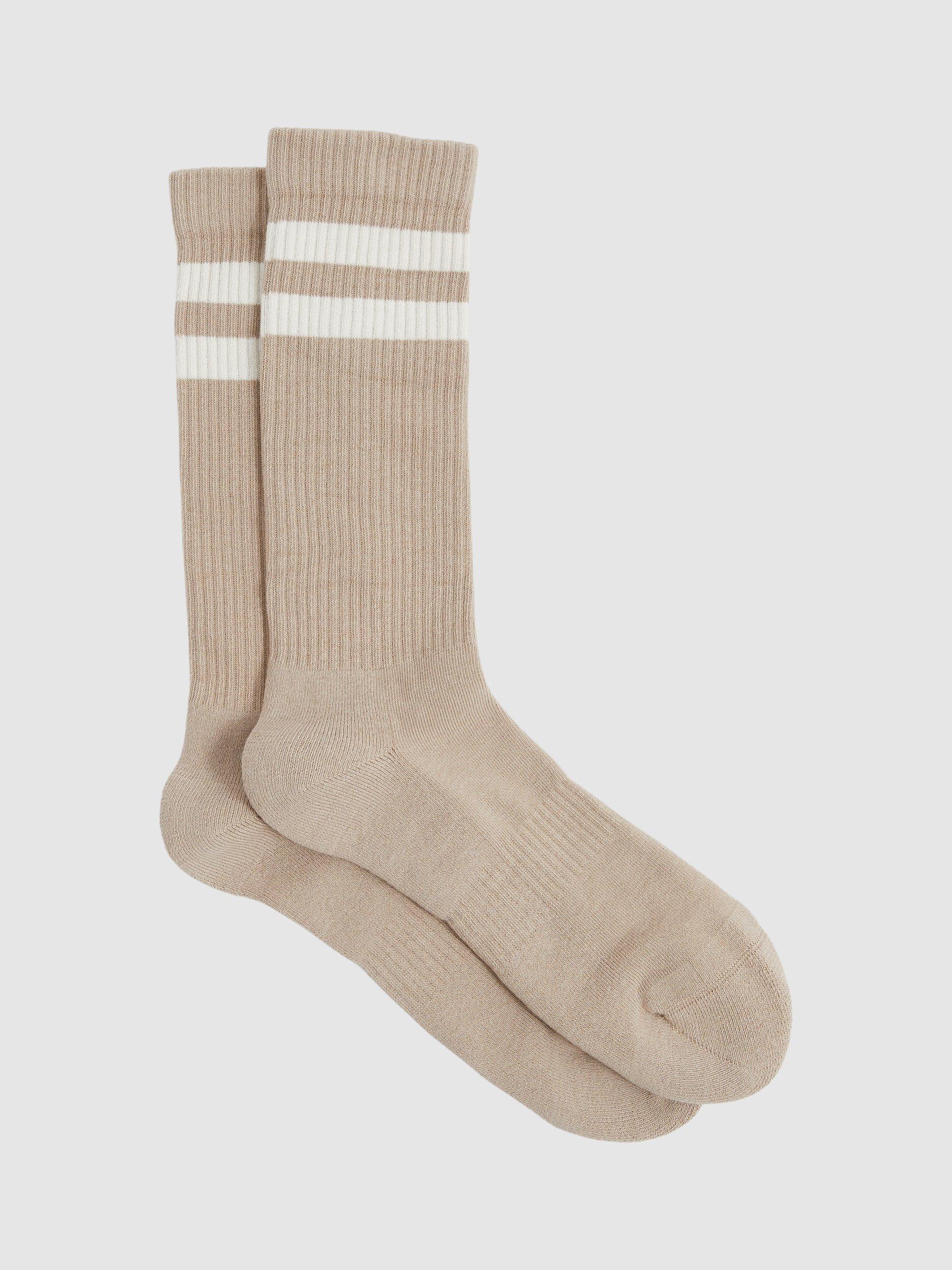 ReissHenman Double Stripe Crew Socks, Brown/Multi