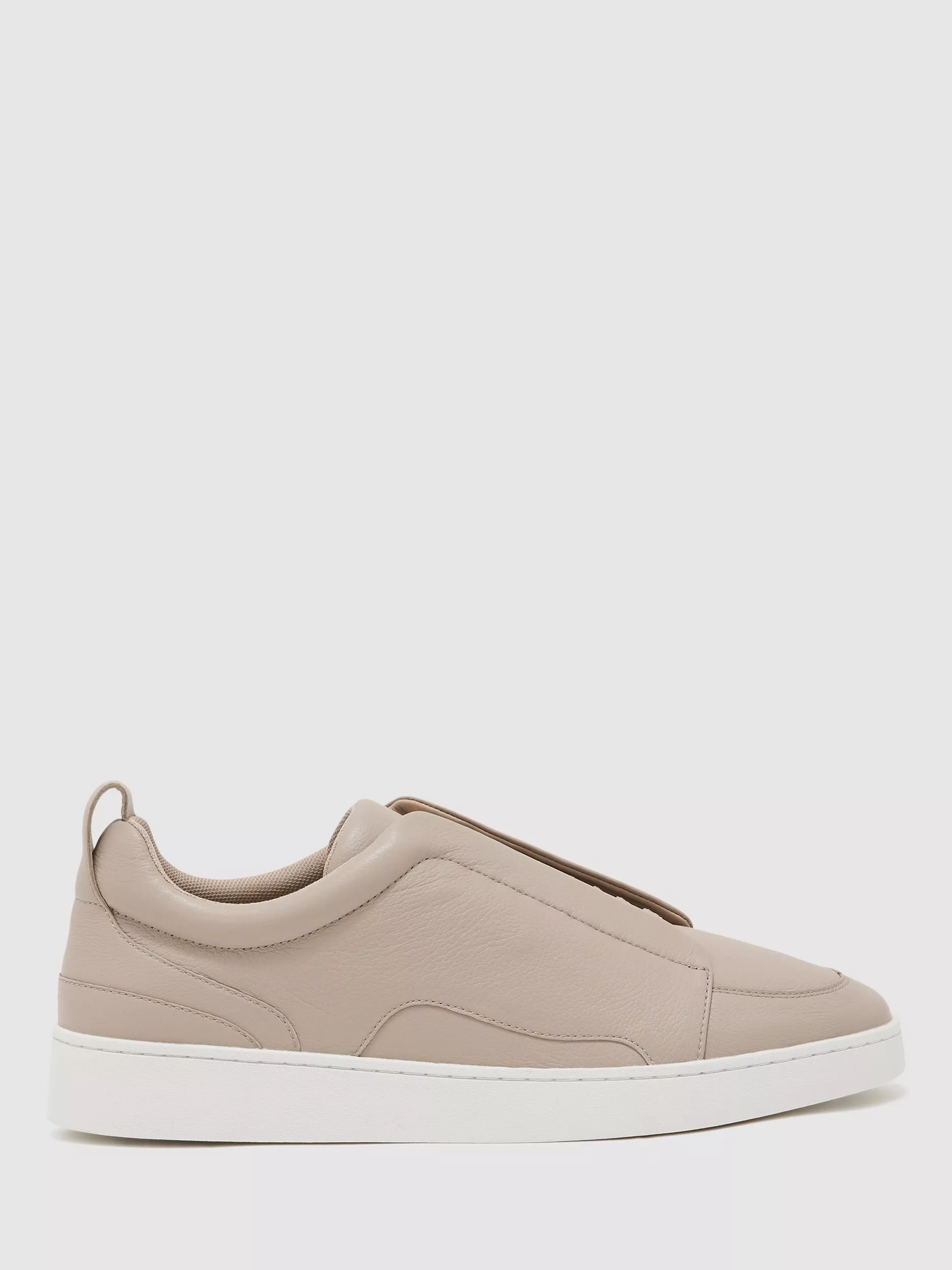 These trainers by Reiss lend cool assurance to casual days, crafted in supple leather with a round toe and lace-up fastening. Cushioned comfort meets clever detail, making every step through the city or studio confident and comfortable.