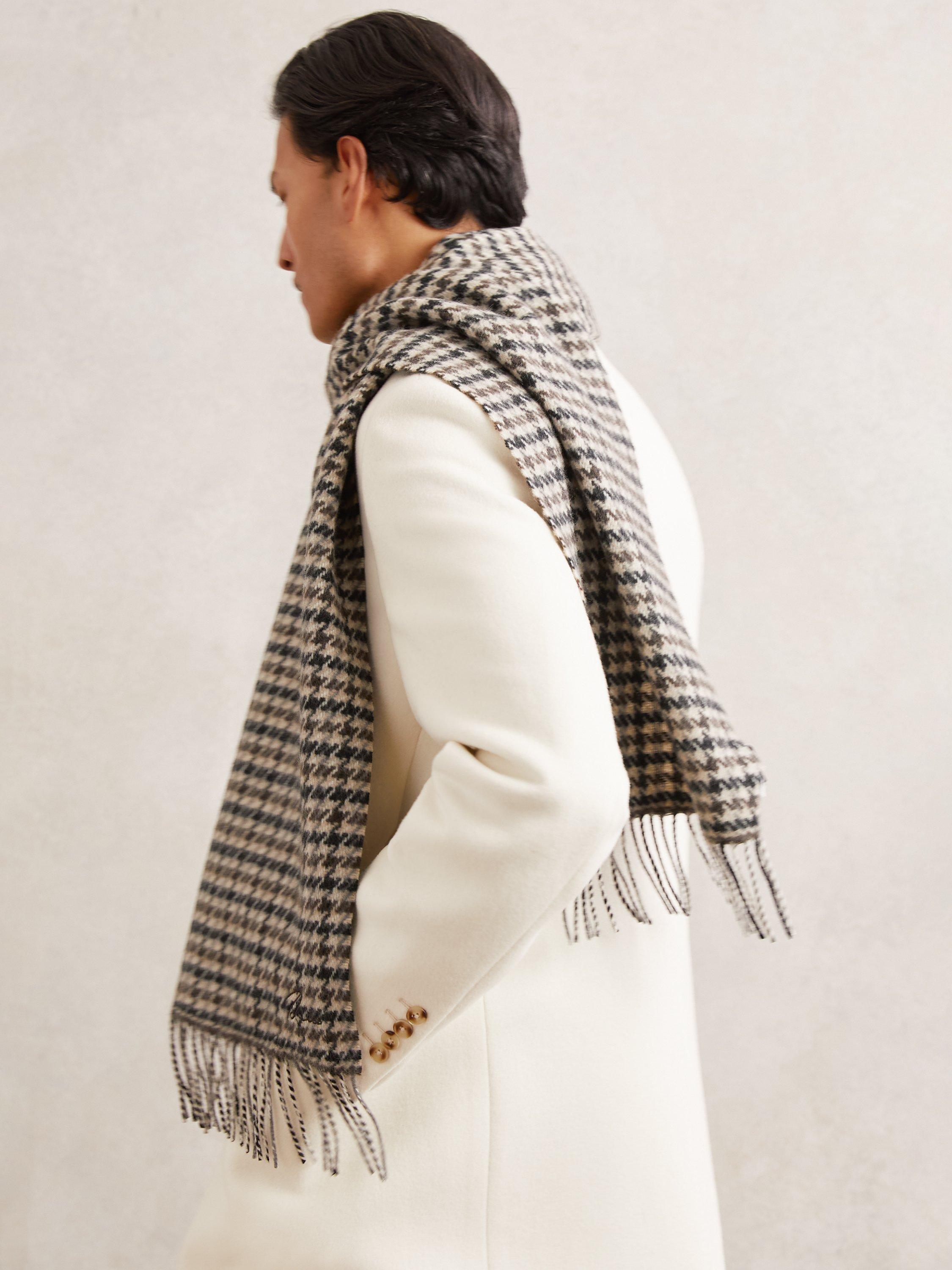 ReissHoundstooth Wool Blend Scarf, Brown/Multi