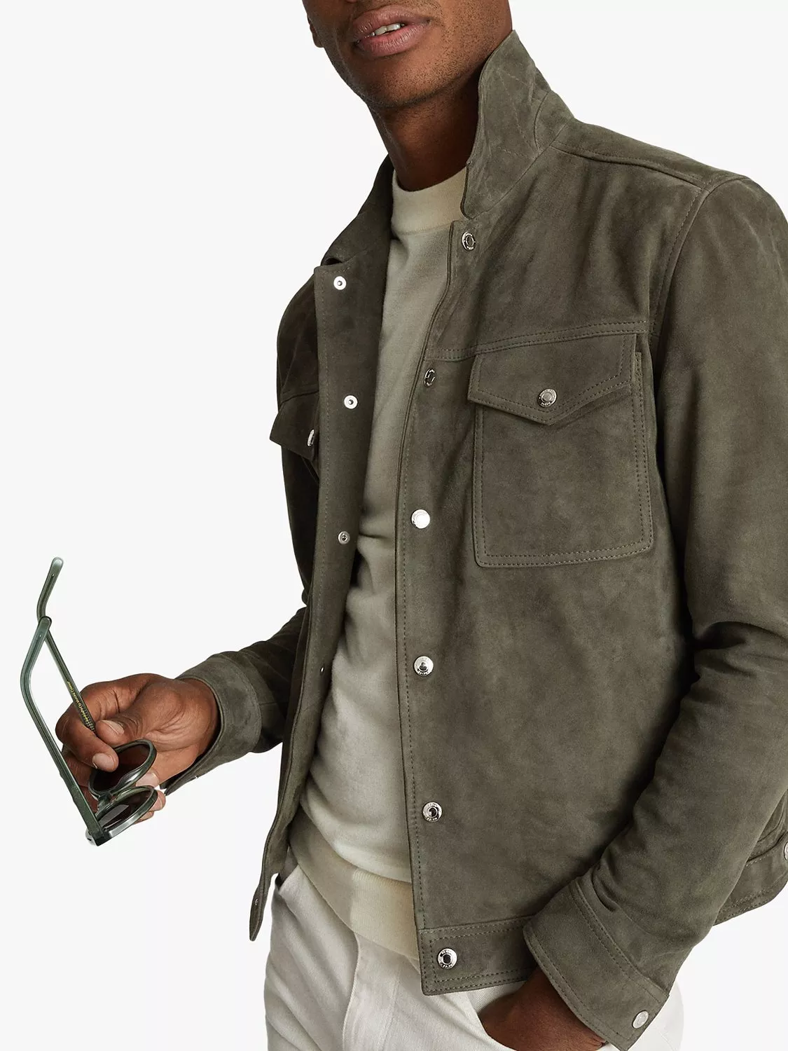Inspired by classic trucker styles of days gone by, the Jagger jacket from Reiss is an outerwear investment that is sure to become a firm favourite as you step between seasons. Crafted in supple suede with brushed silver-tone fastenings, this piece provides a strong foundation to every look - we like it layered over knits or tees when the temperature rises.