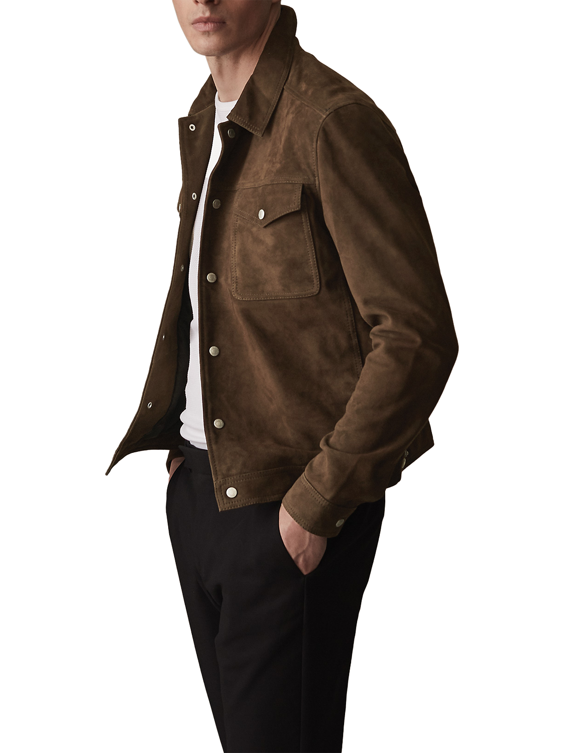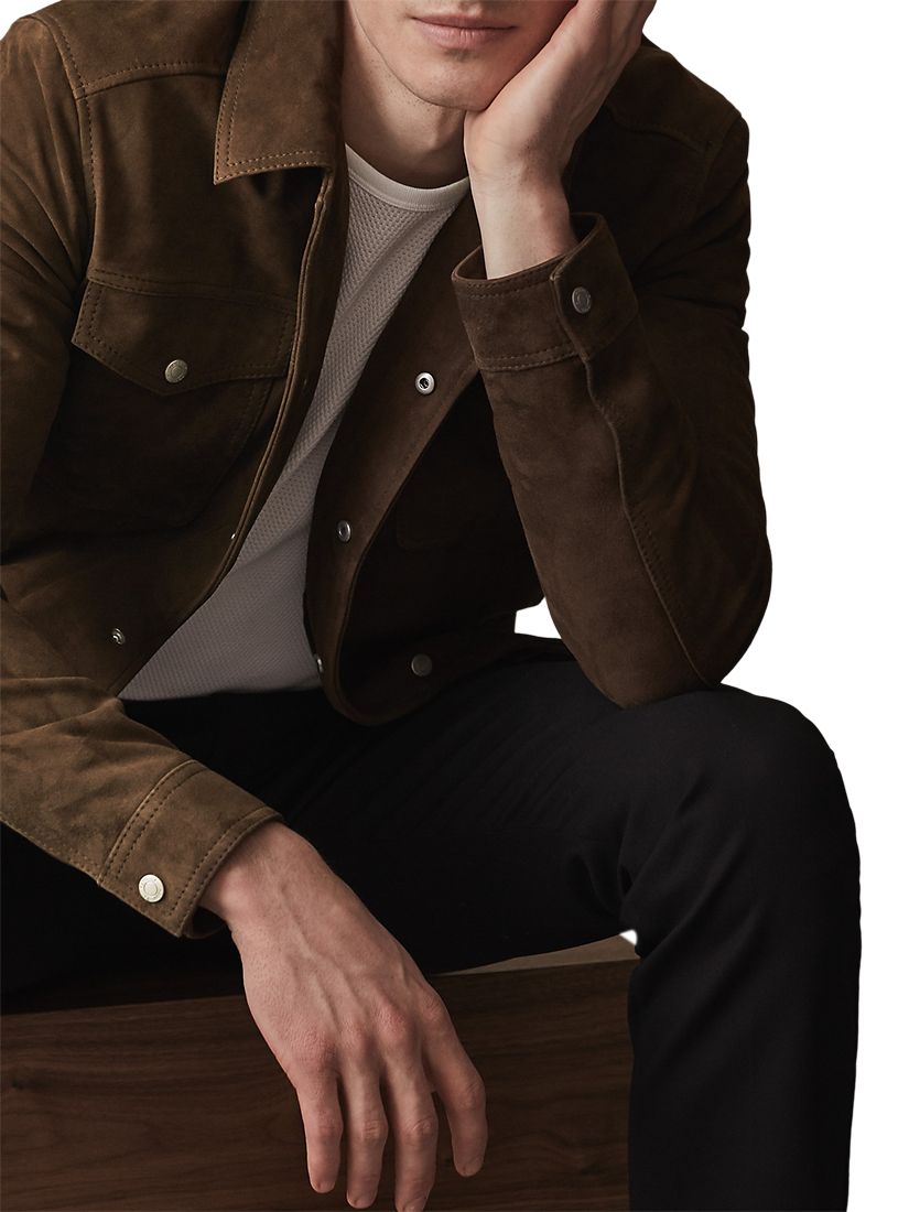 Crafted from goat leather suede that is lightweight and sumptuously soft, this Jagger jacket is an effortlessly luxurious transitional cover-up from Reiss.
