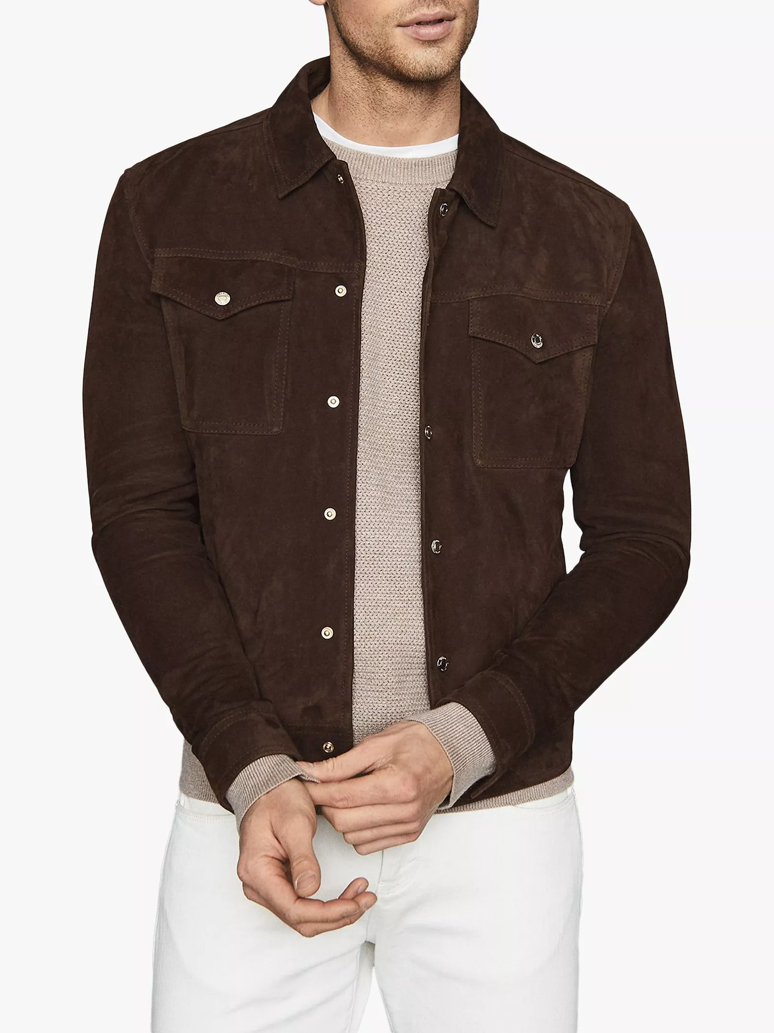Inspired by classic trucker styles of days gone by, the Jagger jacket from Reiss is an outerwear investment that is sure to become a firm favourite as you step between seasons. Crafted in supple suede with brushed silver-tone fastenings, this piece provides a strong foundation to every look - we like it layered over knits or tees when the temperature rises.