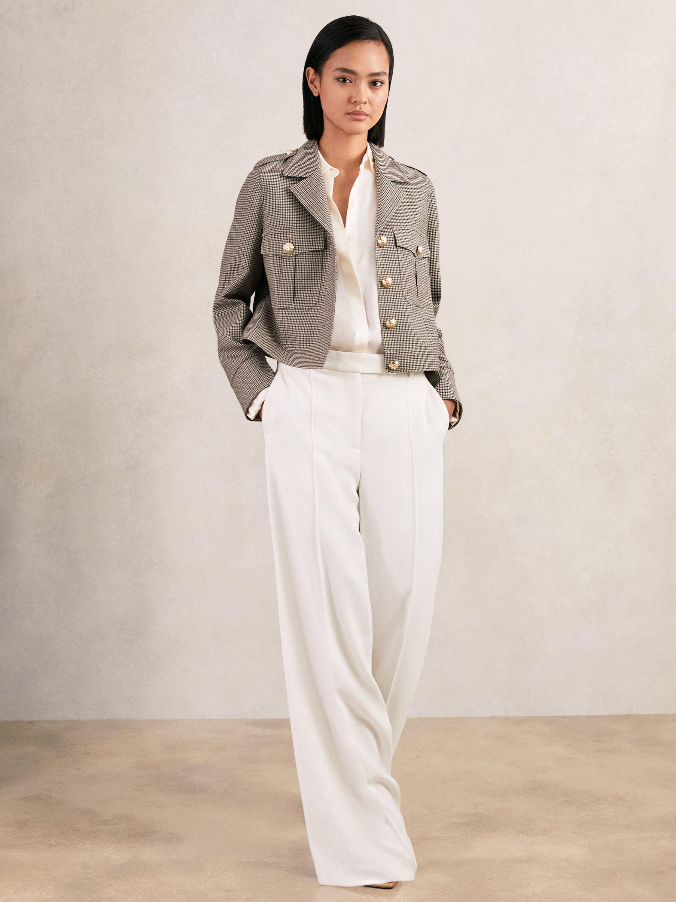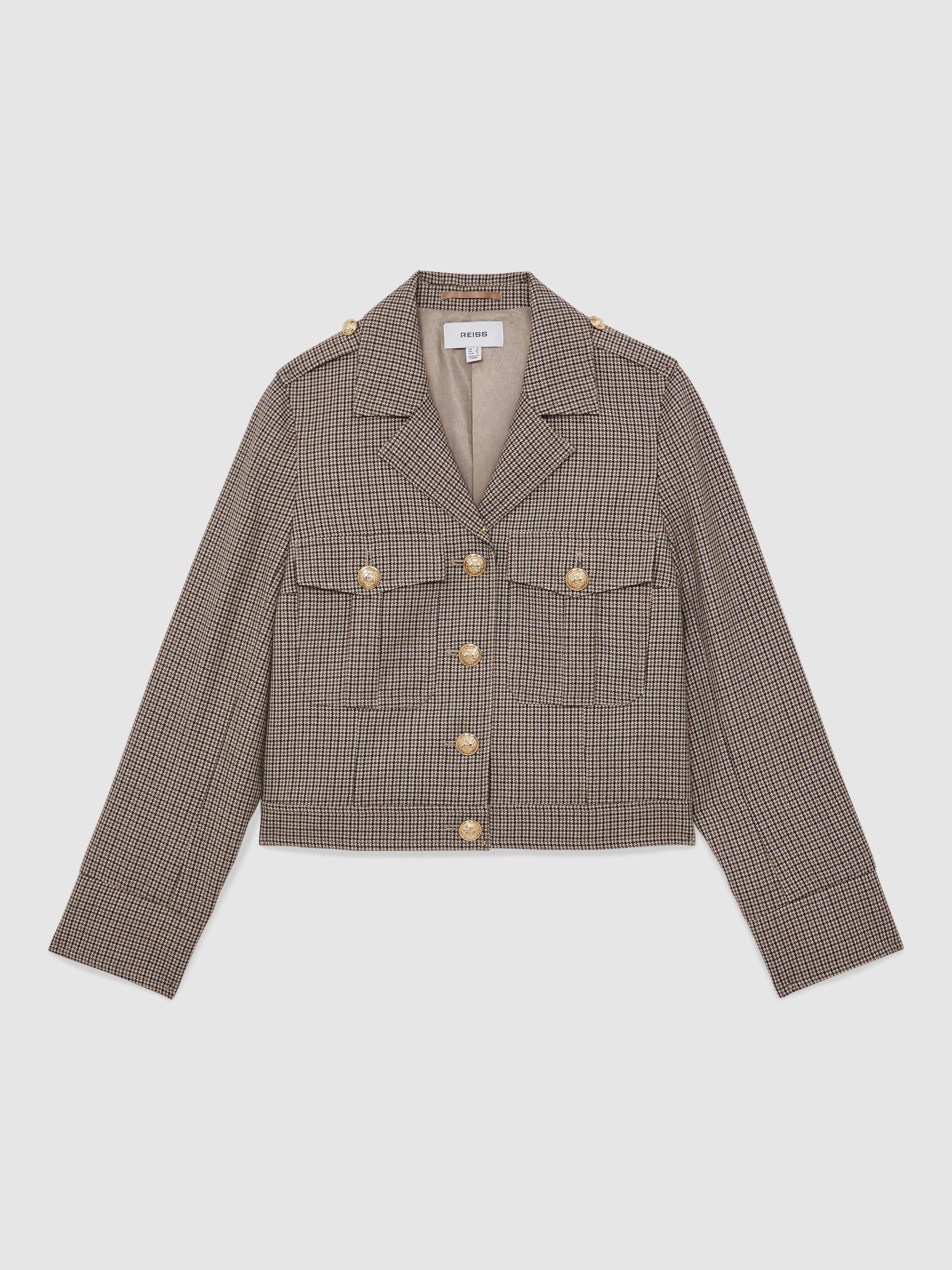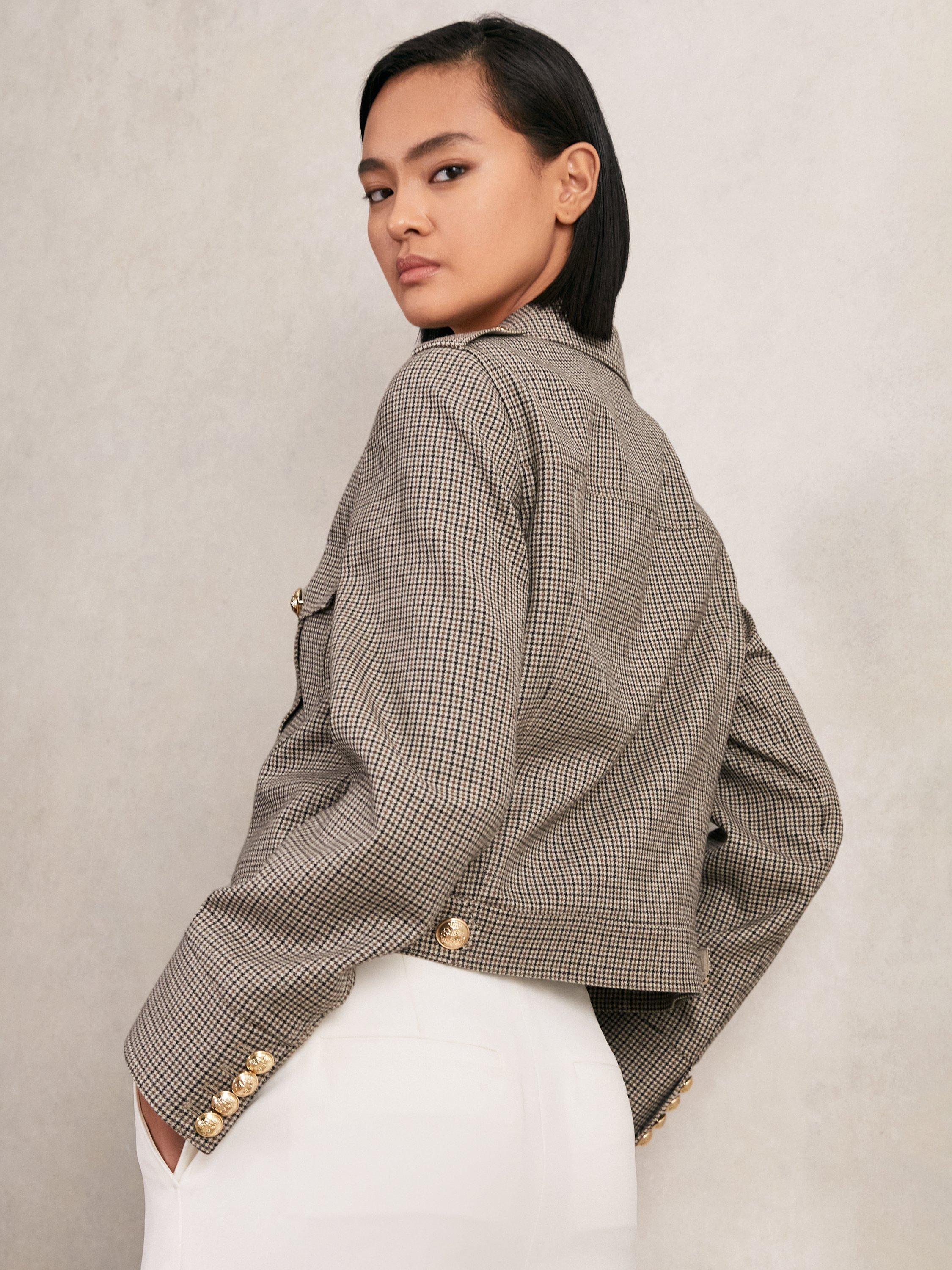 With its check pattern and classic collar, this 100% wool shacket brings extra warmth and personality to your day. Layer it for meetings or weekends, and let its cropped fit sharpen your look with minimal effort.