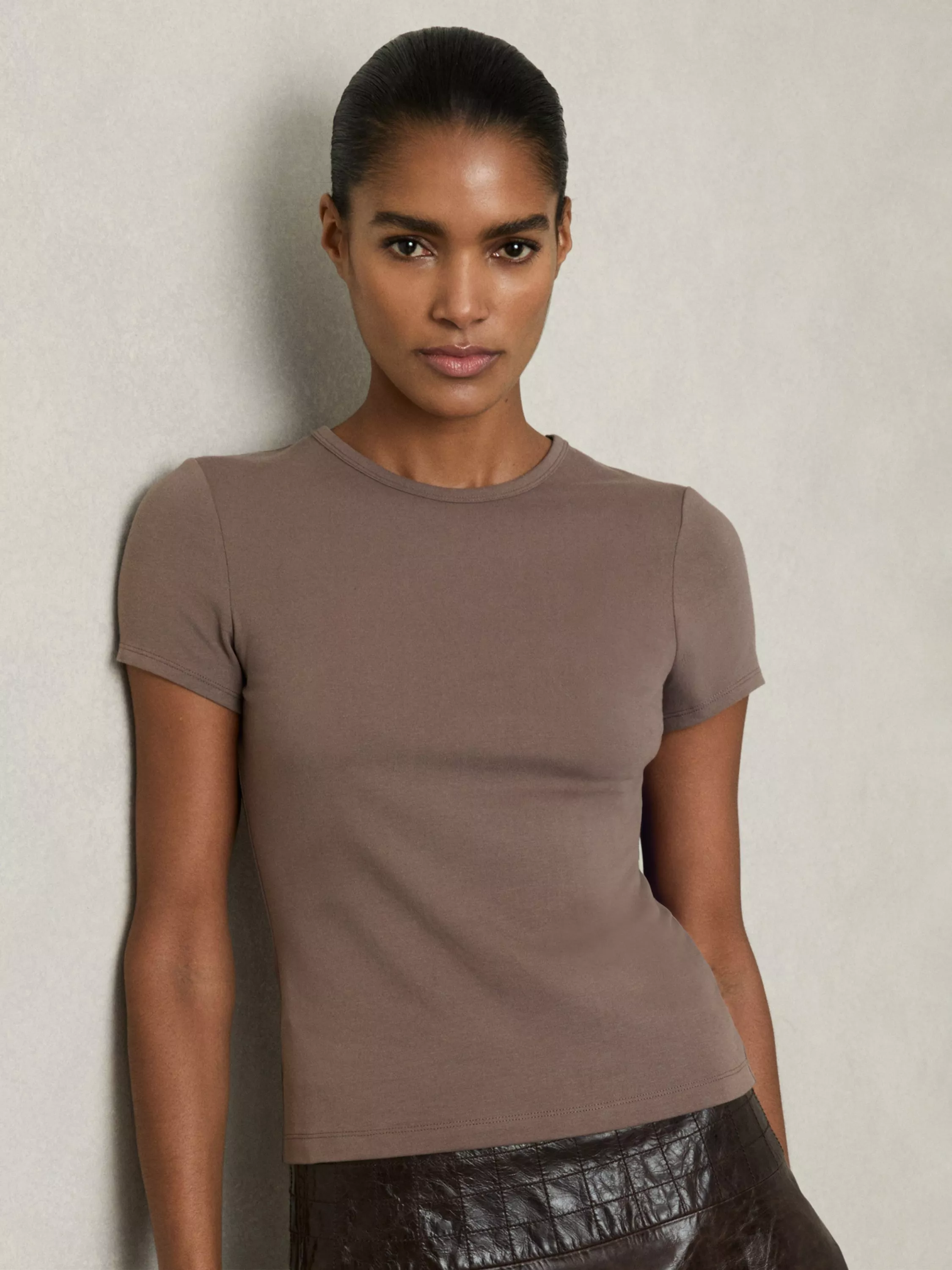 A solo piece or layering staple, this t-shirt by Reiss is plain for easy mixing and matching. With a classic crew neck and short sleeves, it is made from a soft cotton blend and slips on well with tonal denim ready for the summer.