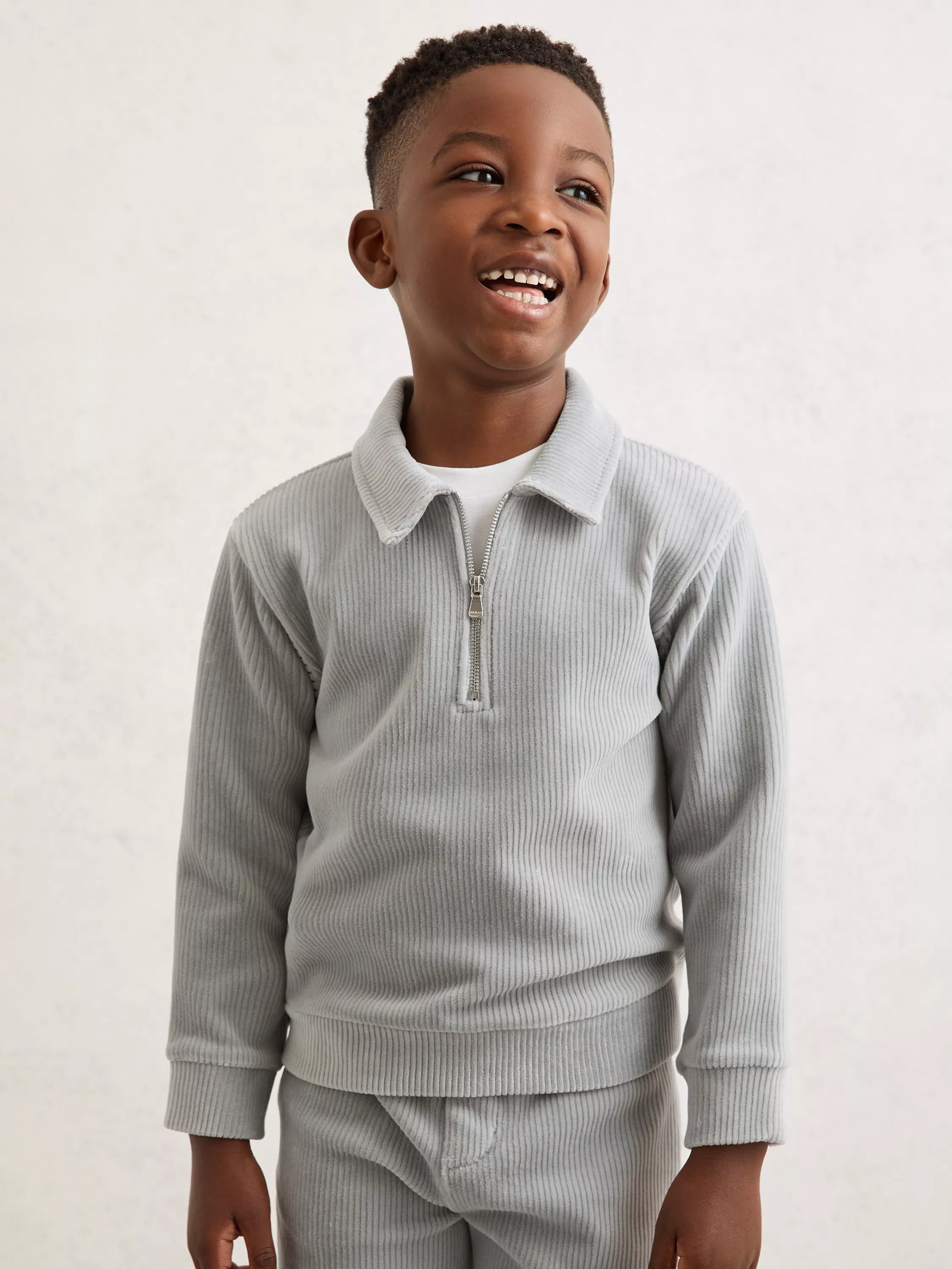 This textured zip-neck sweatshirt keeps them comfortable all day, adding effortless style to any look. Ideal for layering.
