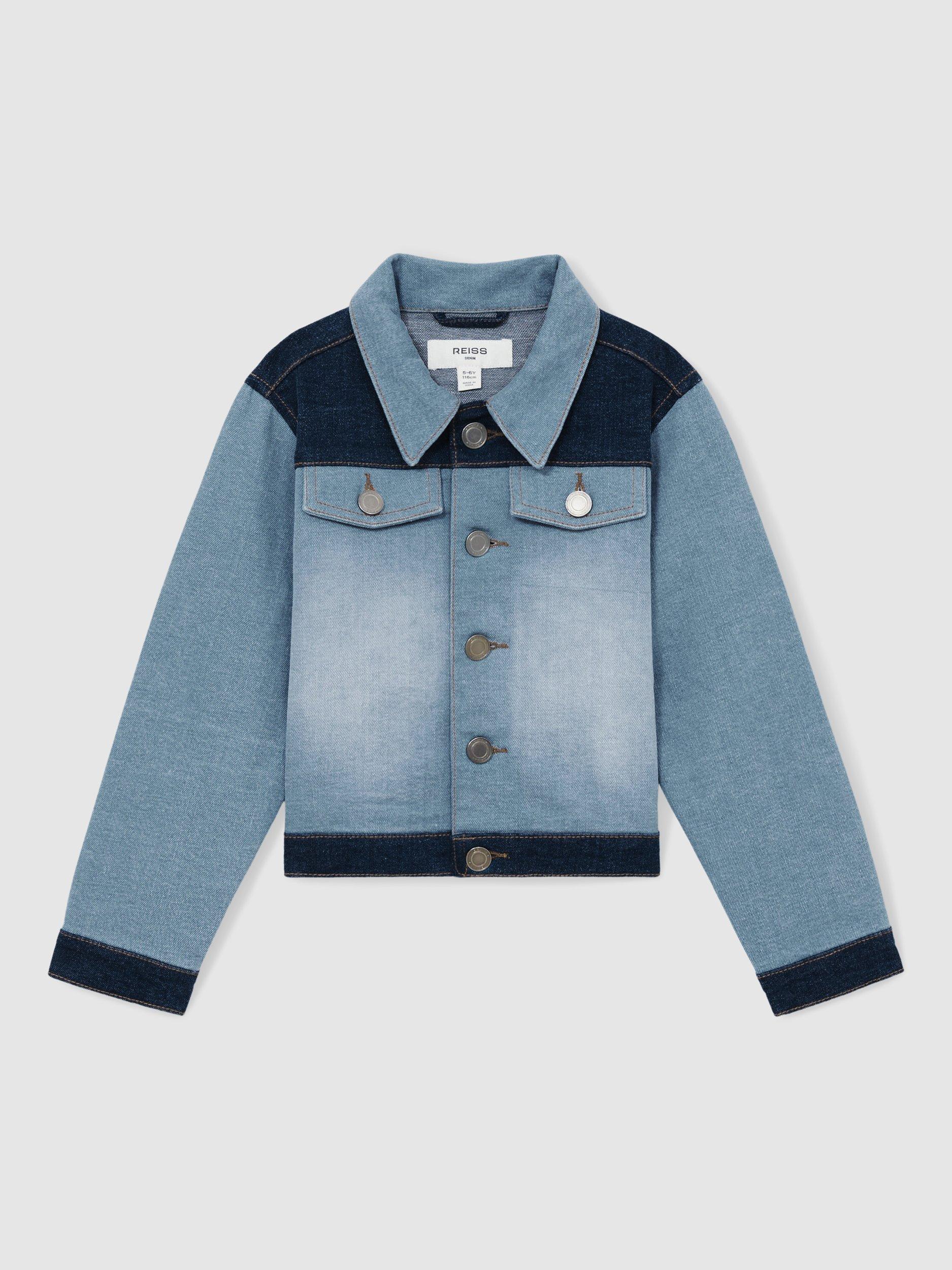 Double denim done differently. The Briar denim jacket is patchworked with two washes of denim to create a standout two-tone design. Finished with flap pockets with logo embossed buttons and contrast stitching.