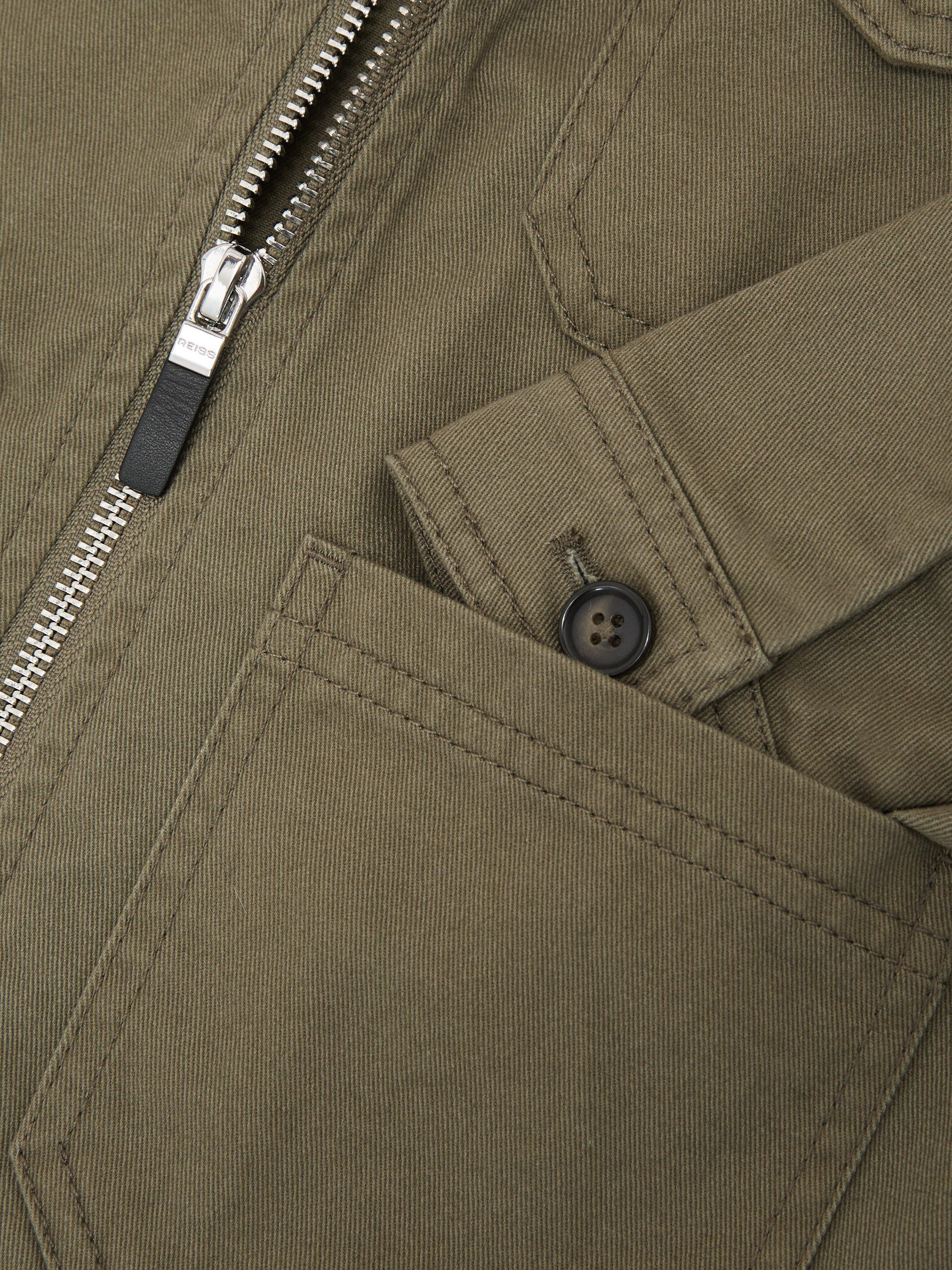 The Nevis utility jacket is crafted from lightly brushed cotton twill and features patch and flap pockets. It has a zip-through front and buttoned cuffs.