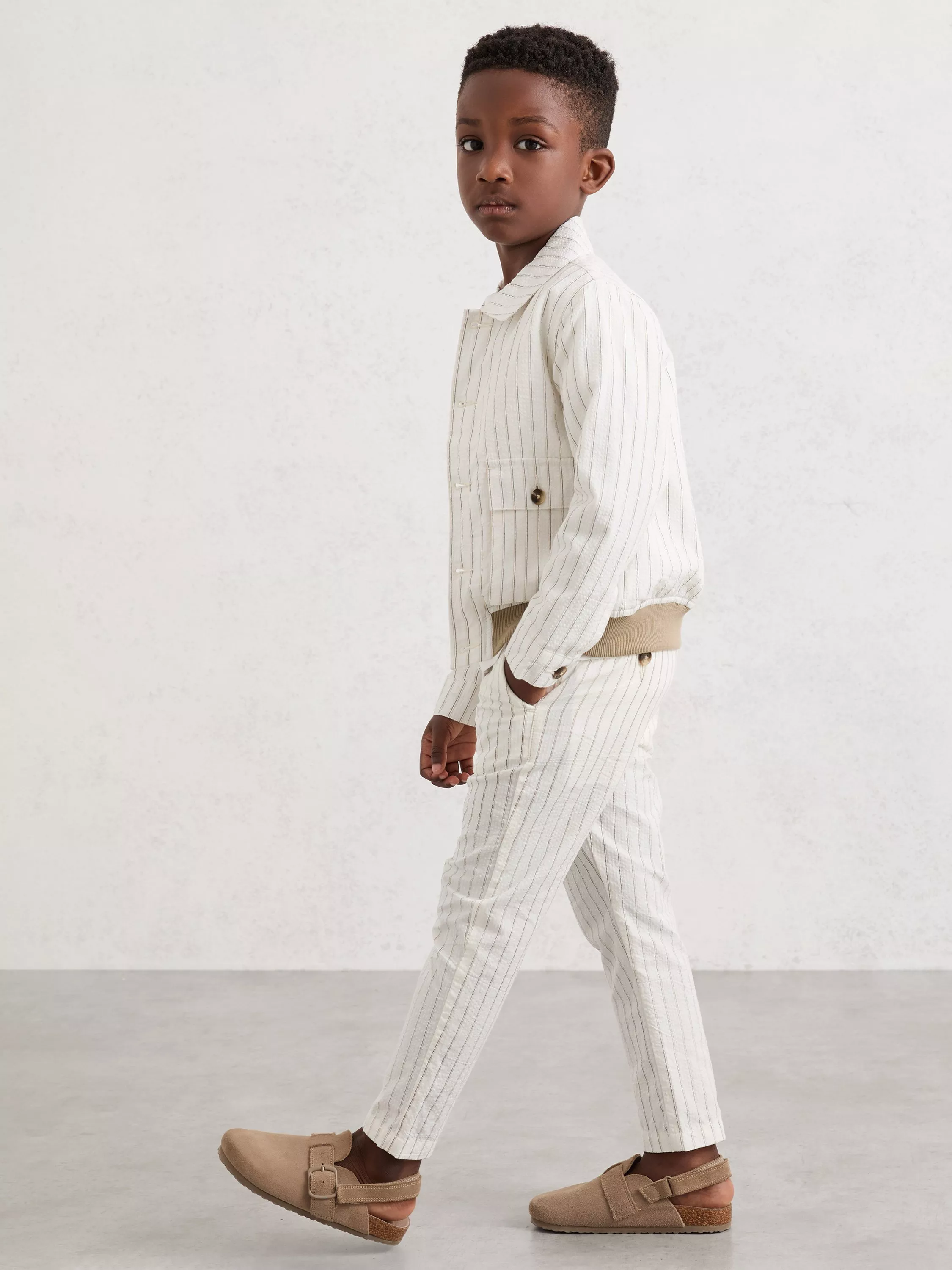 Classic striped chinos in pure cotton offer smart comfort and easy movement, making every occasion feel special for any child who loves to stand out.