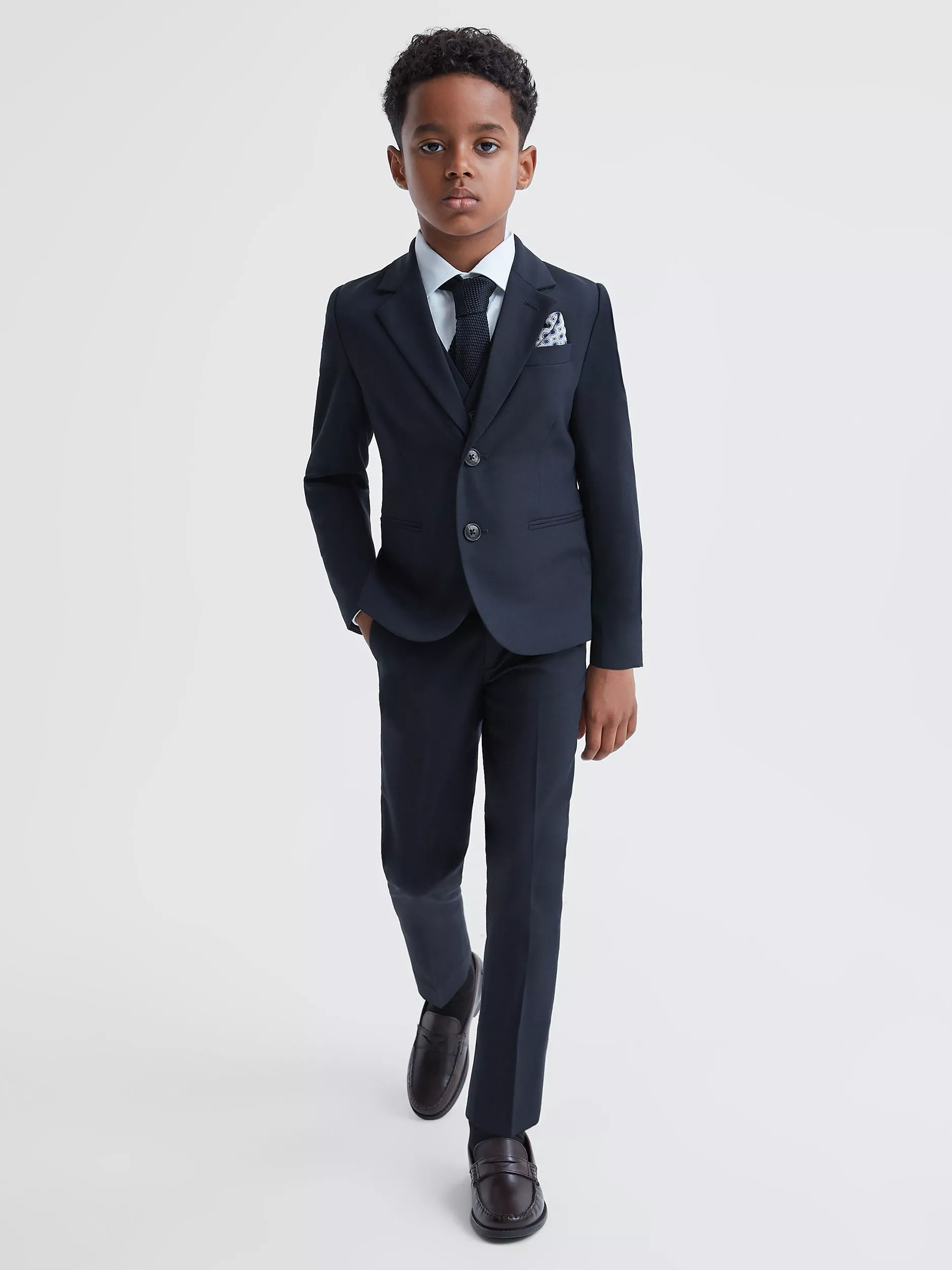 Crafted from a wool blend with hints of stretch, the Hope single-breasted blazer from Reiss maintains its smart shape and limits creasing. Designed with notch lapels, faux jetted pockets, a vent to the reverse and lined for comfortable wear. Best styled with its coordinating trousers and waistcoat for a polished look.