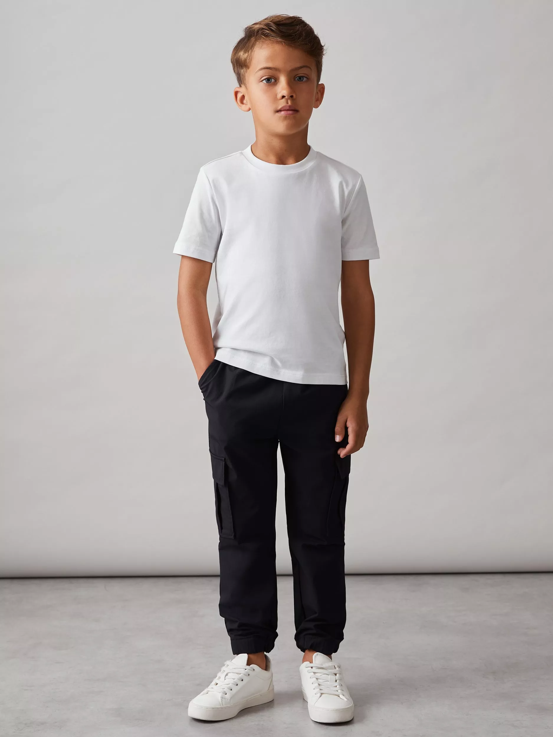 Crafted from soft and stretchy jersey, these versatile trousers are designed with a comfy drawstring waist, cargo pockets and a tapered leg.