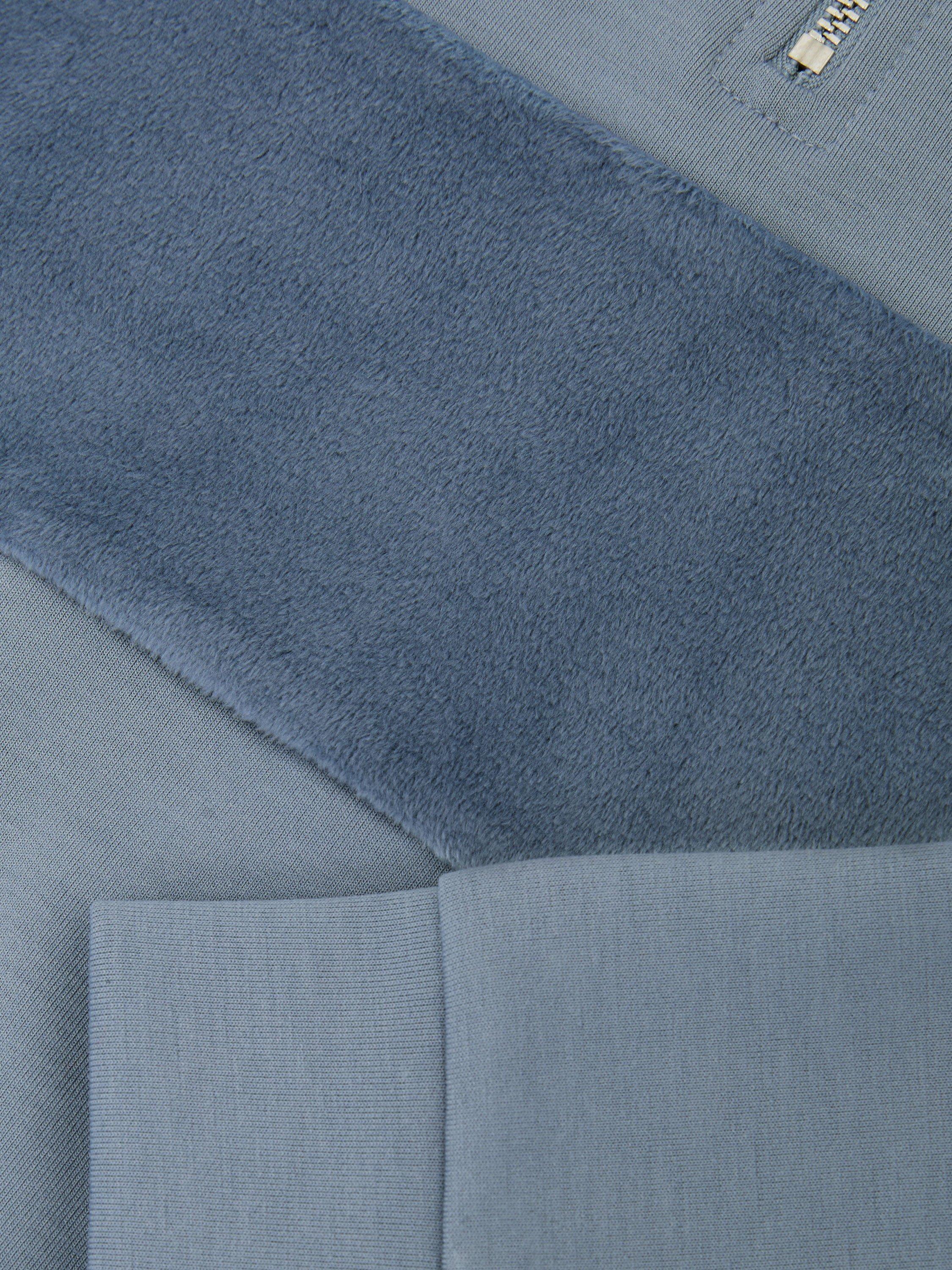 The Selin sweatshirt combines premium interlock jersey with plush velour panelling for subtle texture contrast. Featuring a funnel neck and half-zip, it offers a modern, sporty look.