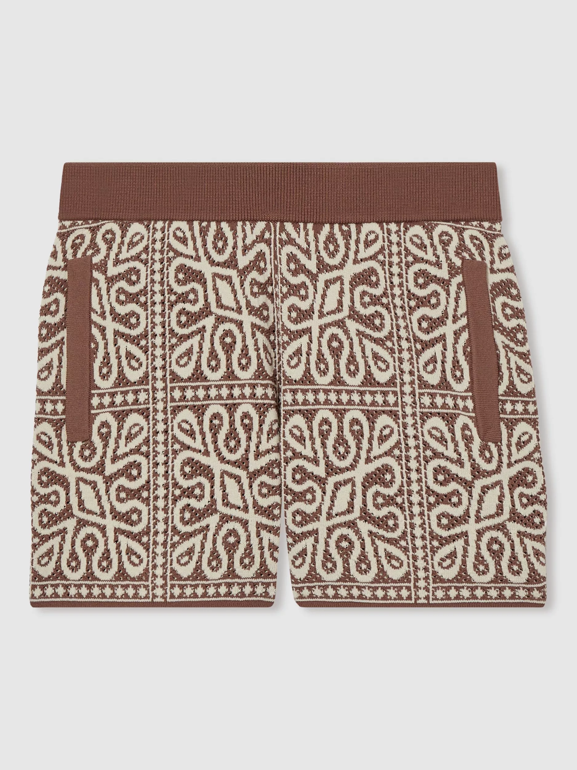 Knitted for comfort, this pair of tile patterned shorts from Reiss come in a relaxed fit with pockets.