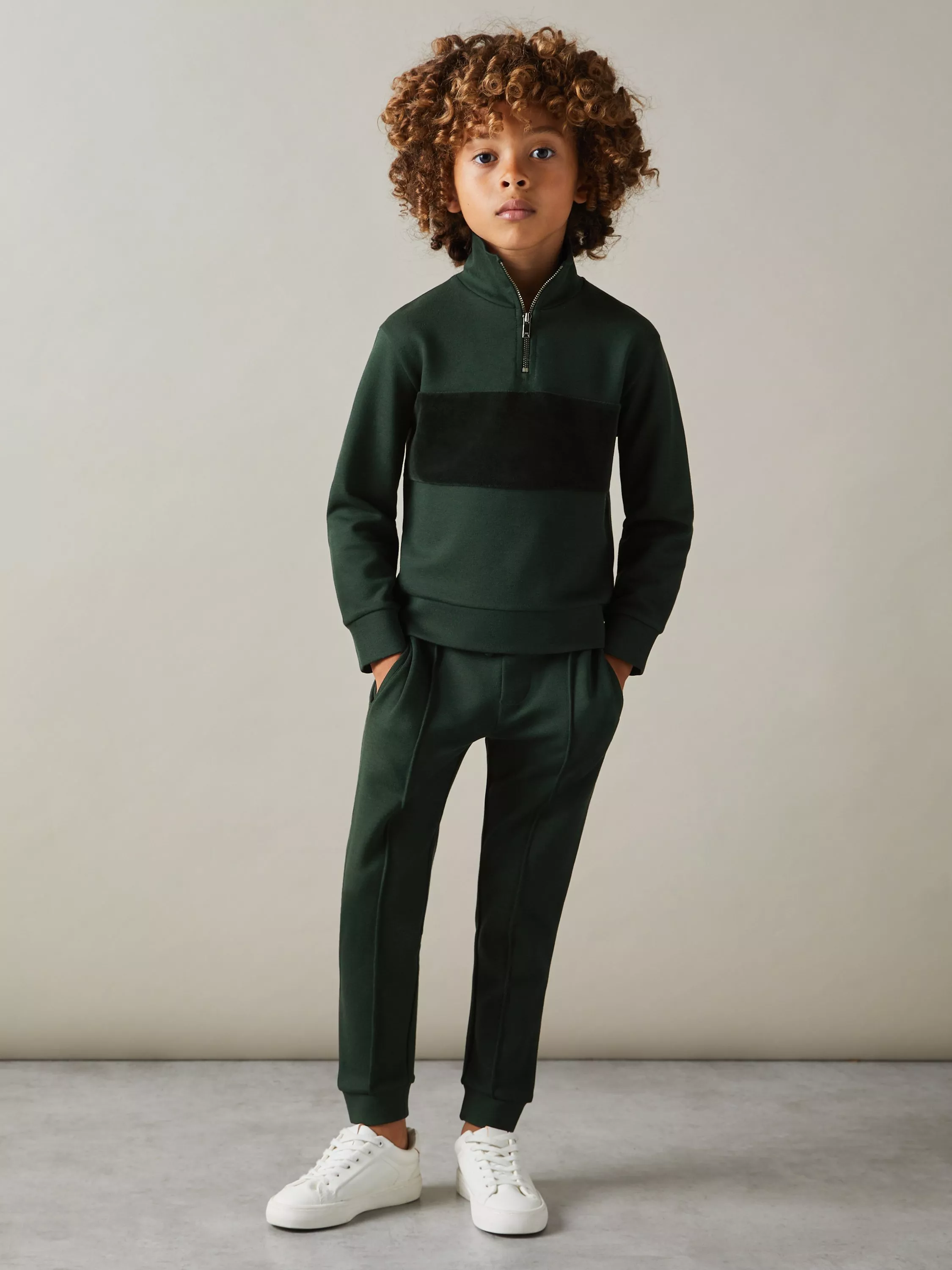 ReissKids' Selin Half Zip Stripe Jumper, Emerald Green