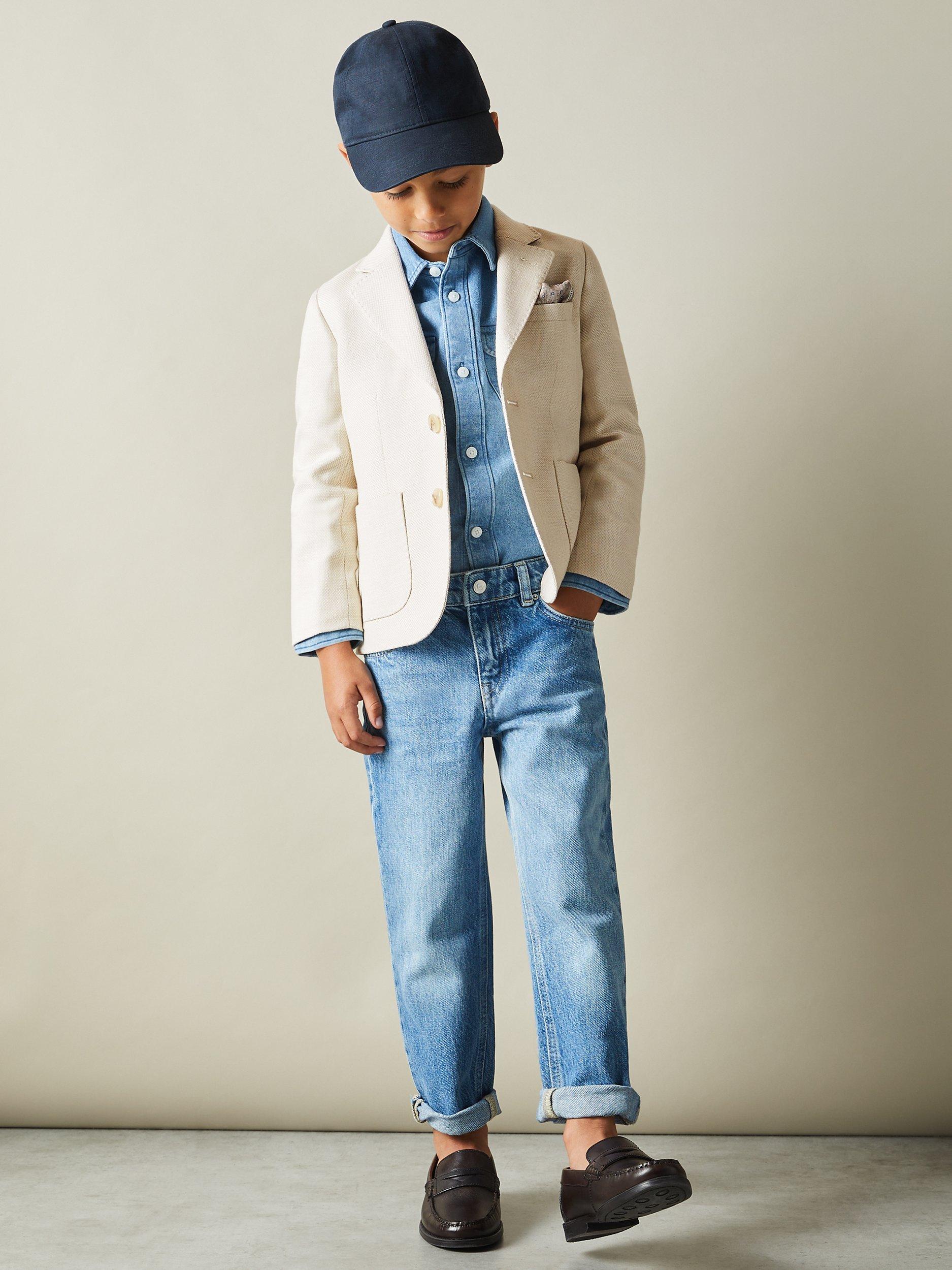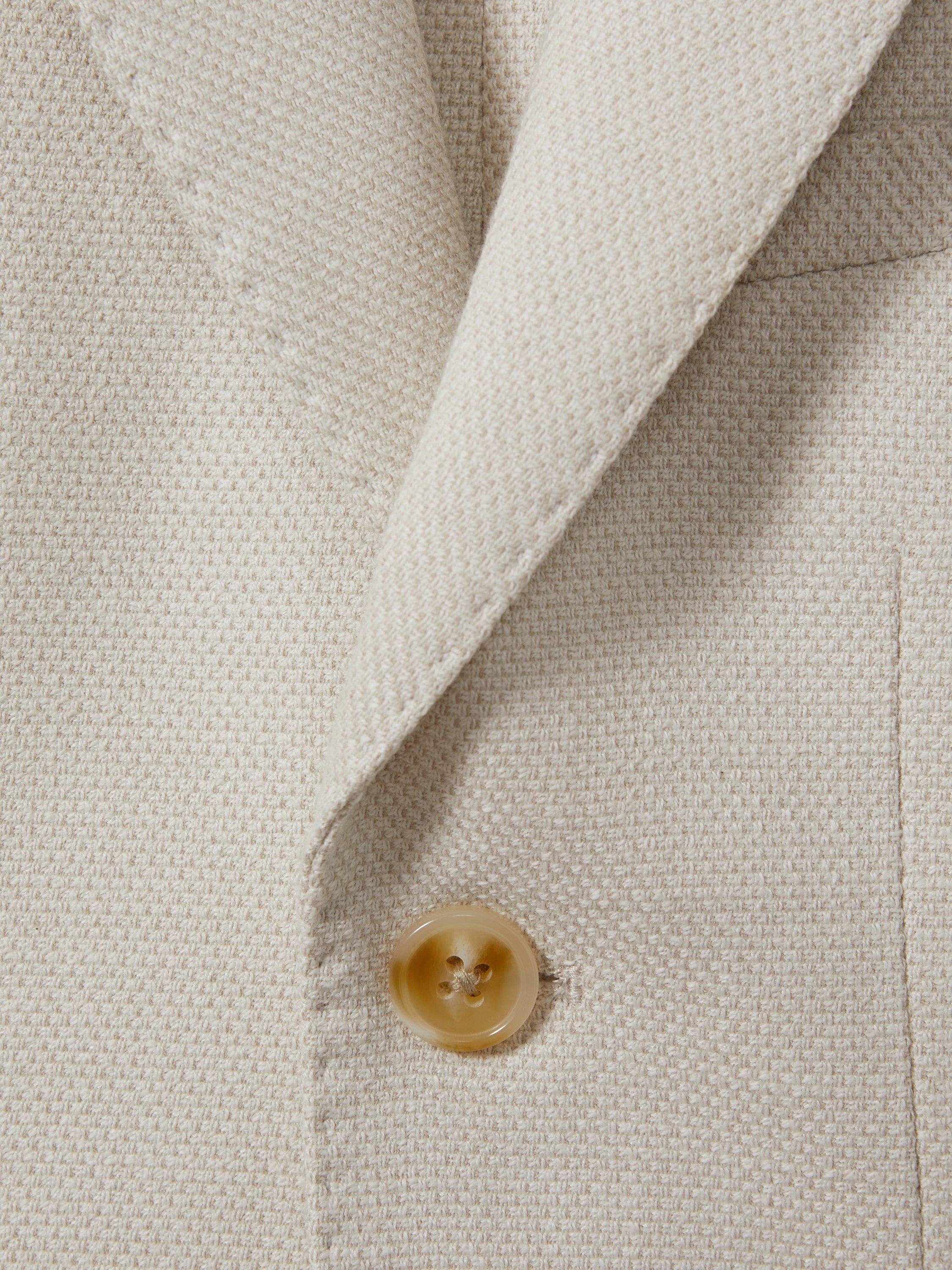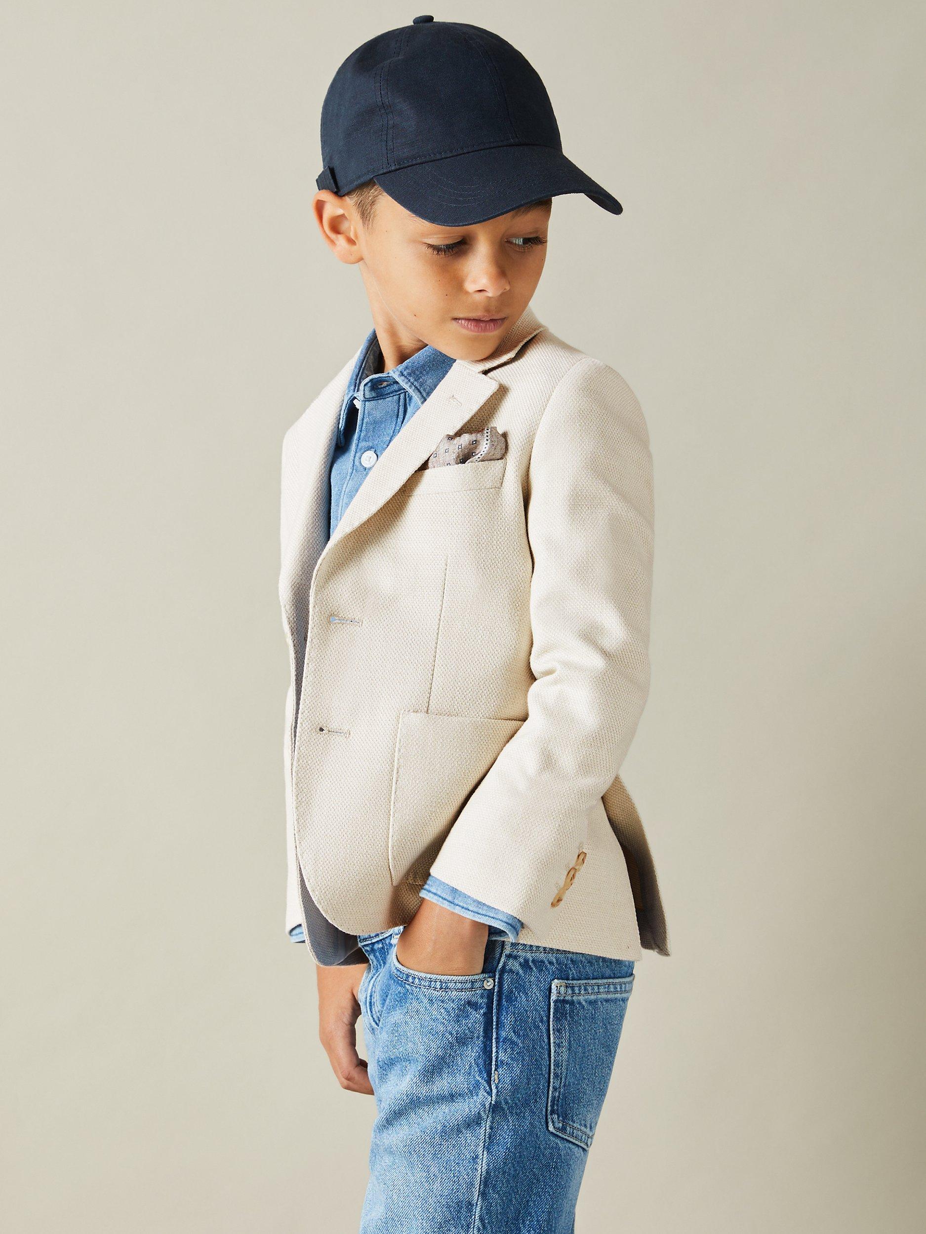 This jacket is a single-breasted blazer enhanced with soft cotton yarns and its complete with a formal slub check.
